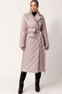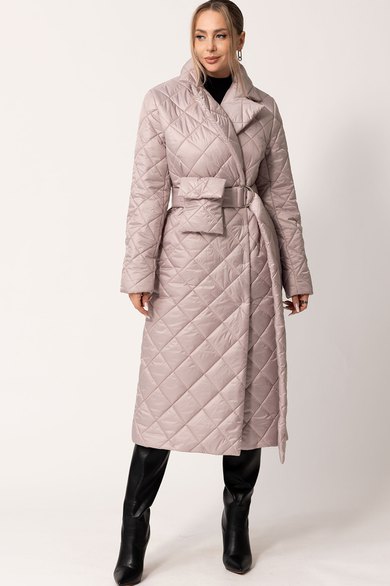 Пальто утепленное с центральной двубортной застежкой на пришивные кнопки, отложным воротником и лацканами. В боковых швах- карманы. Спинка цельная. Рукав втачной, двухшовный. Пальто со съемным поясом и декоративной сумочкой.