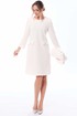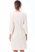 Платье с застежкой на потайную молнию в среднем шве спинки, без воротника, с круглым вырезом горловины, и доплнительной застежкой на петли и пуговицы по левому плечевому шву. По переду с нагрудными вытачками. На уровне линии бедер расположены отделочные клапаны, зафиксированные к платью петлей и пуговицей. Спинка со средним швом, талиевыми вытачками. Рукав втачной, 3/4.