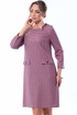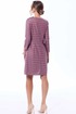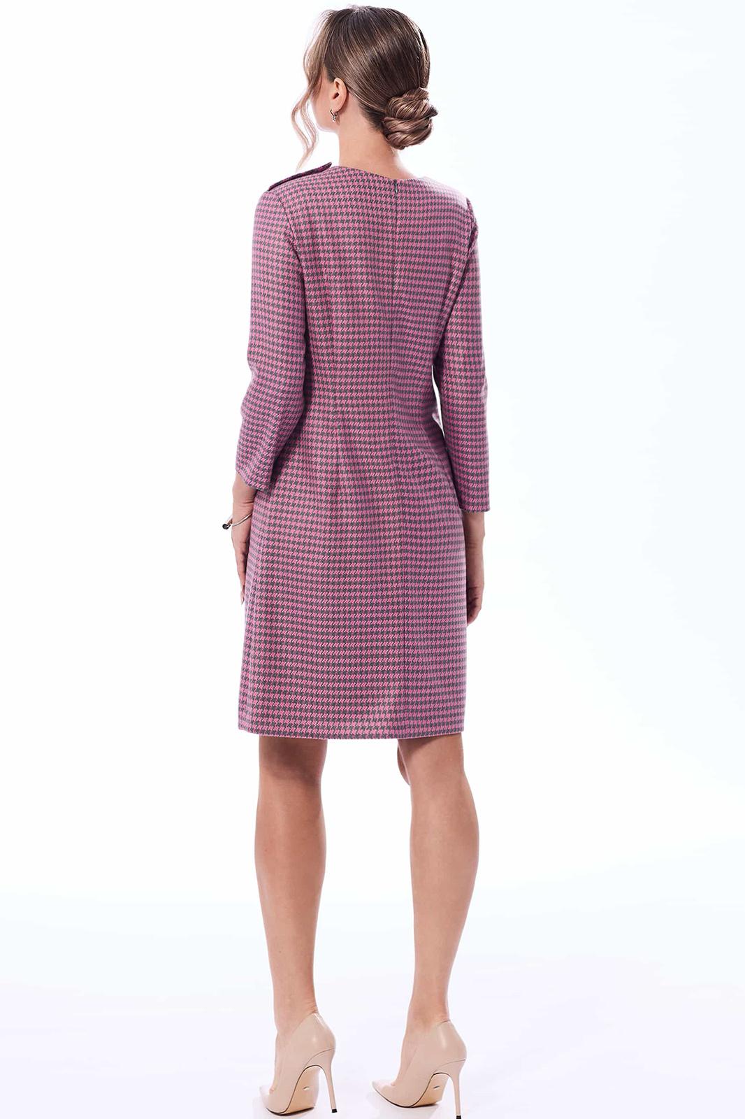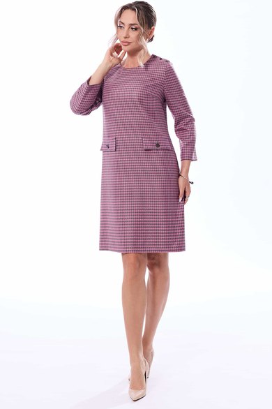 Платье с застежкой на потайную молнию в среднем шве спинки, без воротника, с круглым вырезом горловины, и дополнительной застежкой на петли и пуговицы по левому плечевому шву. По переду с нагрудными вытачками. На уровне линии бедер расположены отделочные клапаны, зафиксированные к платью петлей и пуговицей. Спинка со средним швом, талиевыми вытачками. Рукав втачной, 3/4