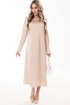 Платье полуприлегающего силуэта, без воротника, с круглым вырезом горловины, с застежкой на потайную молнию по среднему шву спинки. Перед с нагрудными вытачками. Спинка со средним швом. Рукав втачной, длинный, с отрезной манжетой, застегивающейся на одну петлю и пуговицу.