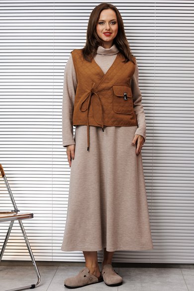 - Тип ткани: Жилет: 100% полиэстер, подкладка - 100% полиэстер. Платье: 38% полиэстер, 31% нейлон, 28% вискоза, 3% спандекс.