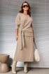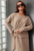 Джемпер свободного силуэта, вырез горловины округлый. Рукав спущенный длинный. По переду драпировка на завязке из основной ткани. Джемпер без застежки.
