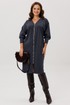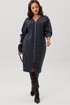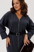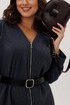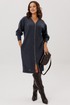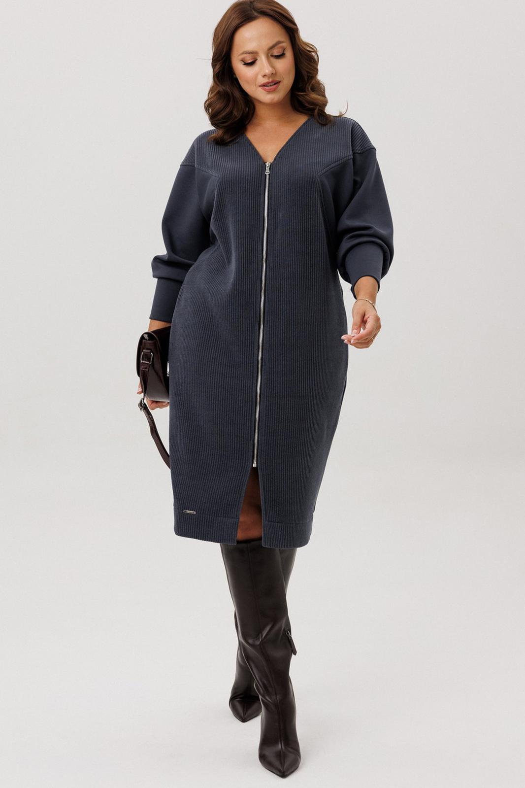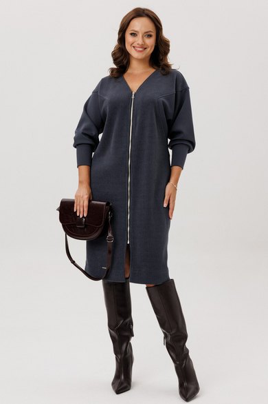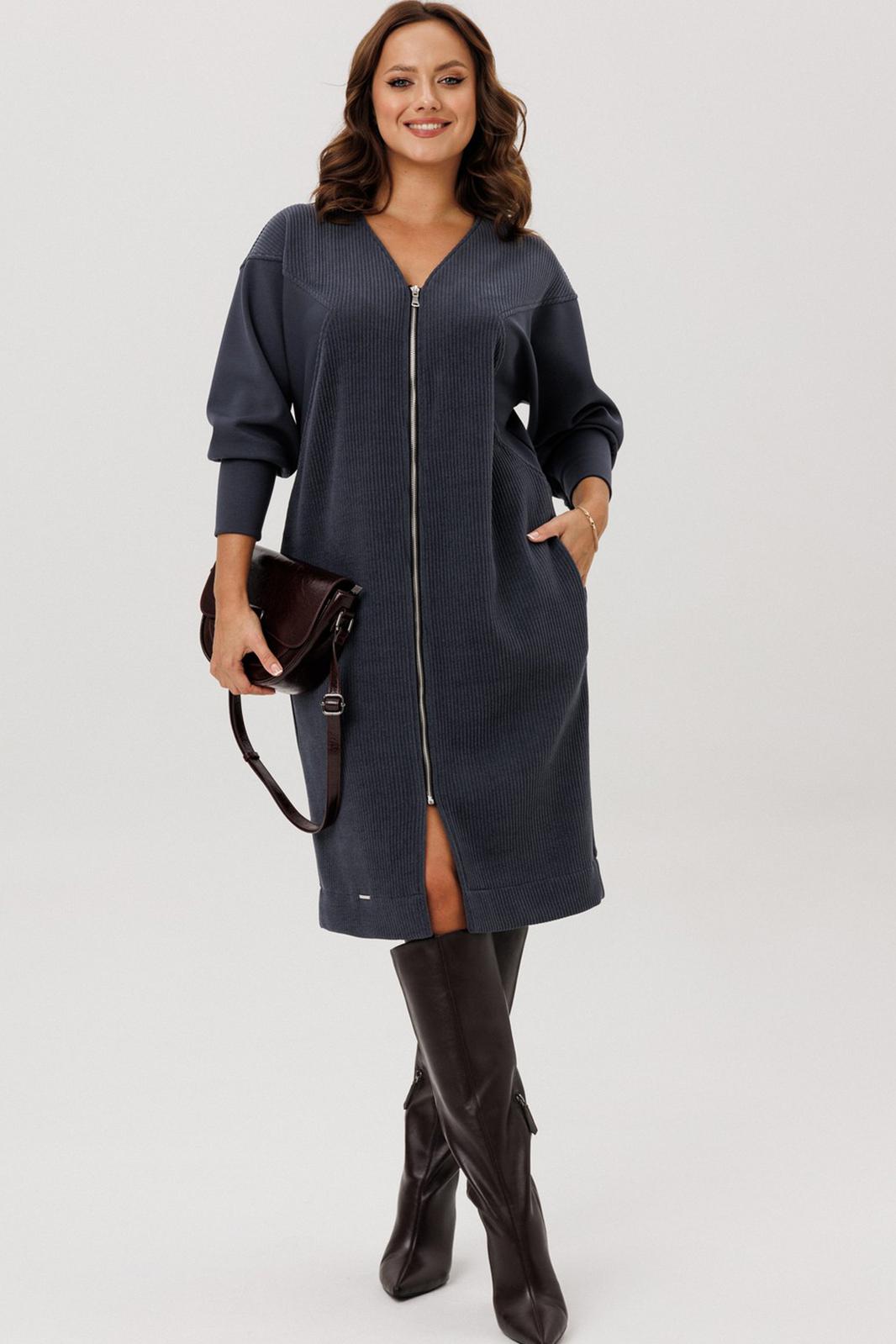 Платье полуприлегающего силуэта, вырез горловины V – образный, рукав цельнокроеный спущенный со вставками из кожи и на манжете внизу. По спинке кокетка, в боковых швах функциональные карманы. Застежка на тесьму-молнию. В комплекте ремень из экокожи.