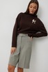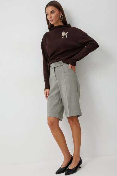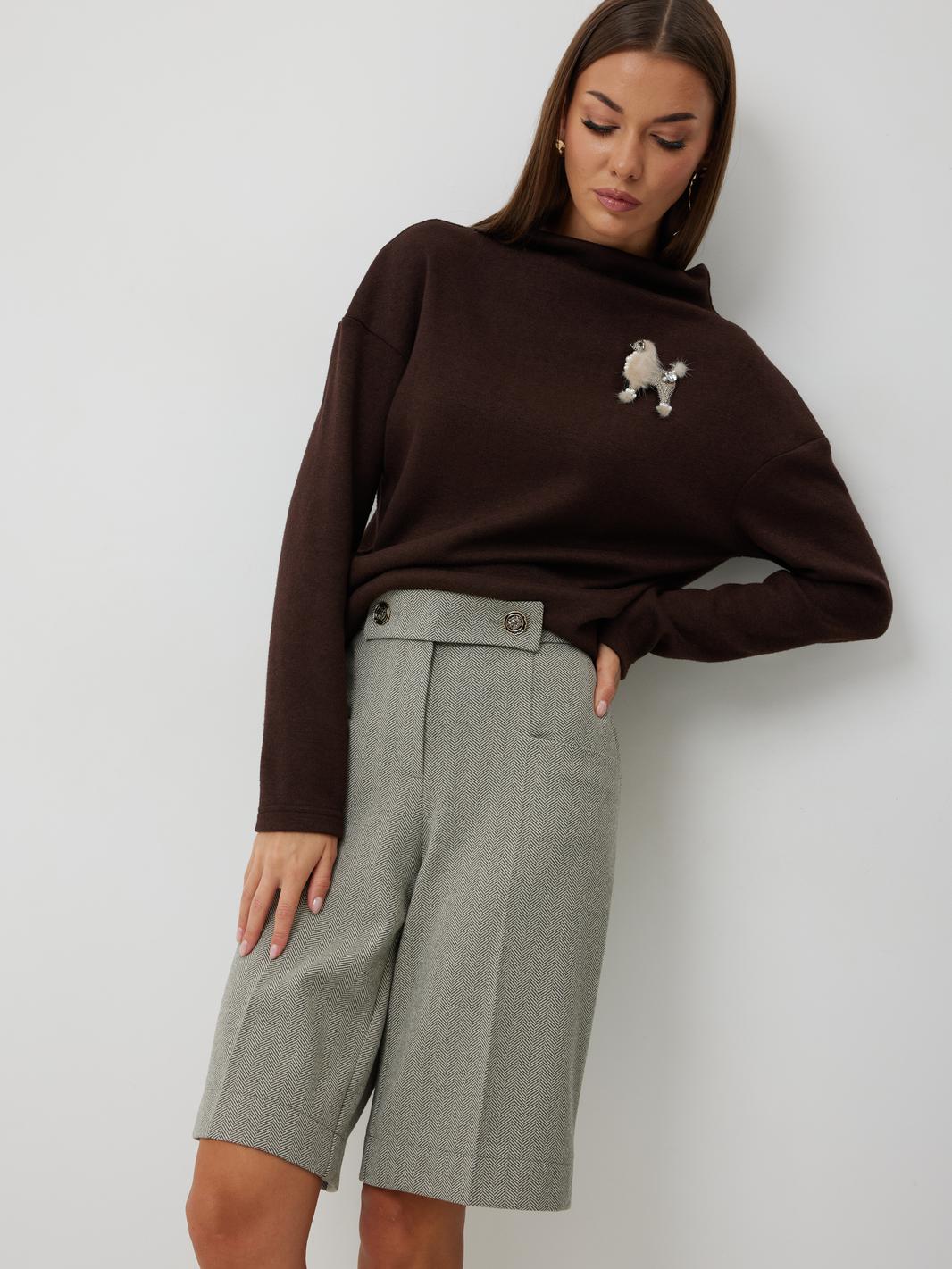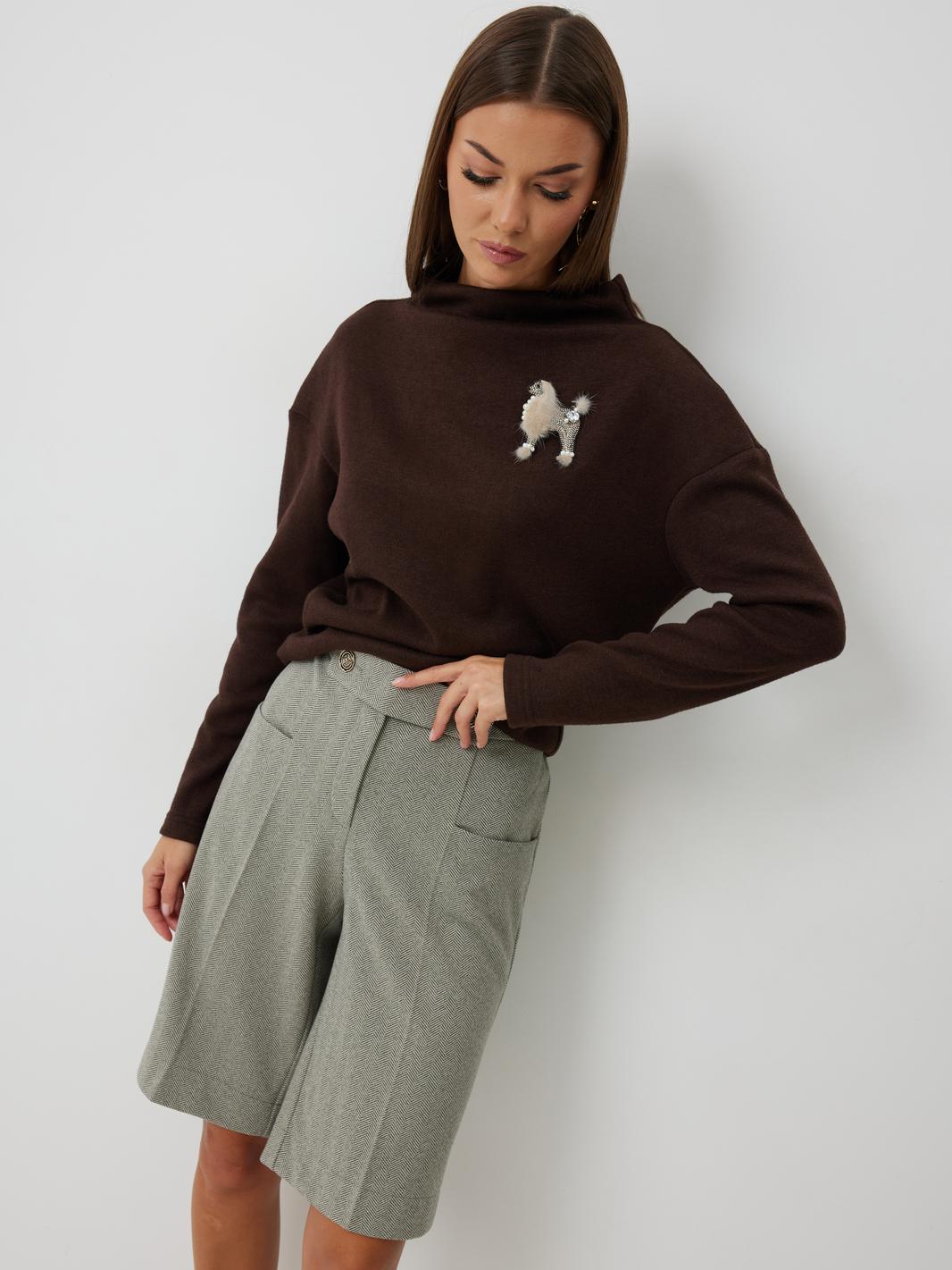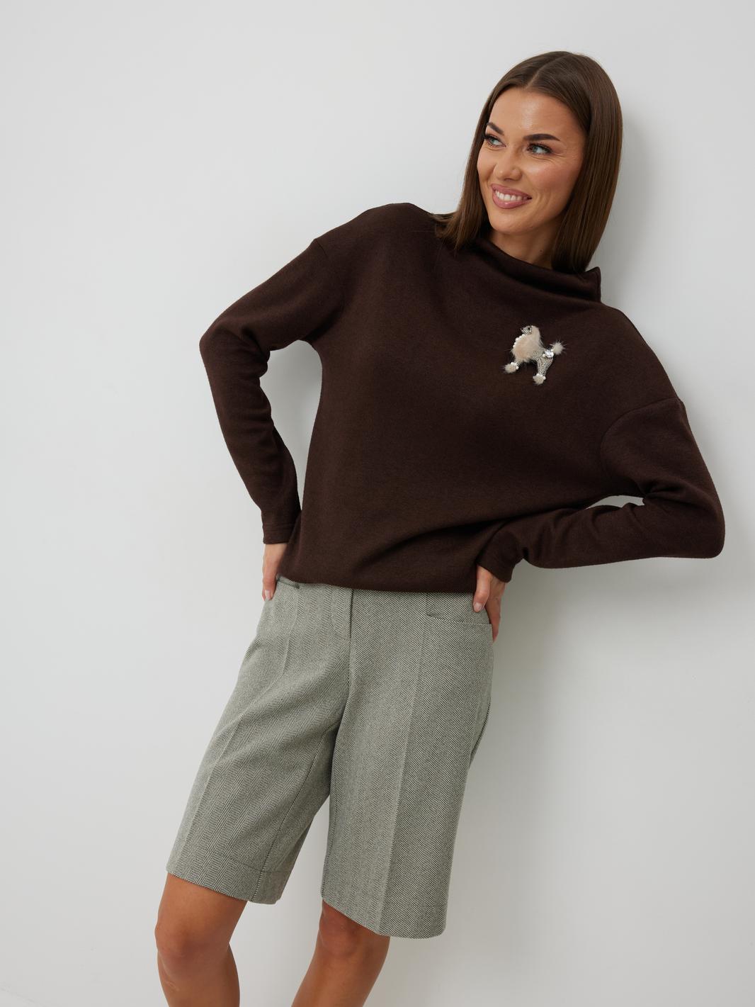 Блузон женский с цельнокроеной горловиной типа хомут. Линия плеча и проймы спущены. Рукав втачной, одношовный. Блузон декорирован авторской брошью. Декоративные элементы и фурнитура могут отличаться от заявленных на фото. Цвет материала может отличаться по тону в зависимости от настроек вашего монитора!