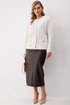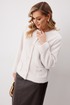 Жакет женский из трикотажной ткани прямого силуэта на подкладке. На деталях переда настрочены накладные карманы округлой формы застегивающиеся на декоративные кнопки. Спинка прямая. Рукав двухшовный с имитацией шлицы. Горловина округлой формы. Жакет застегивается на декоративные кнопки.
