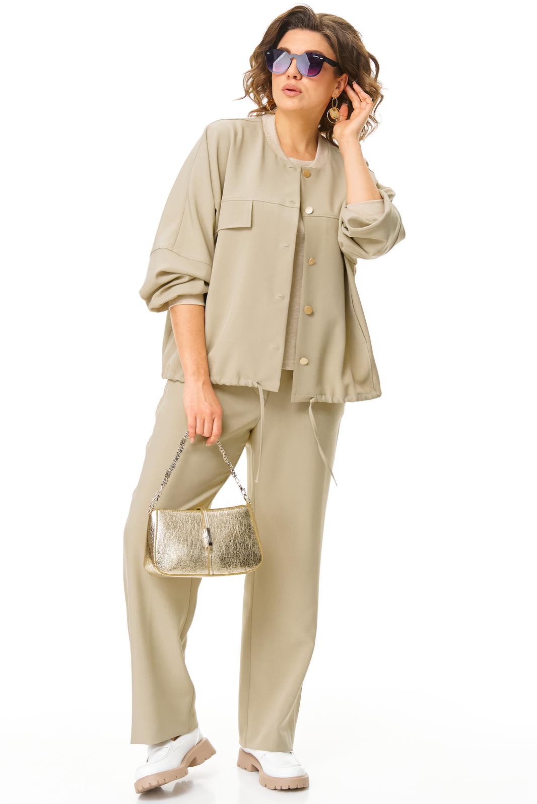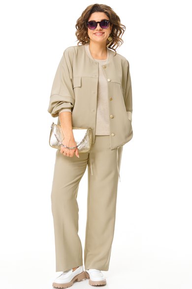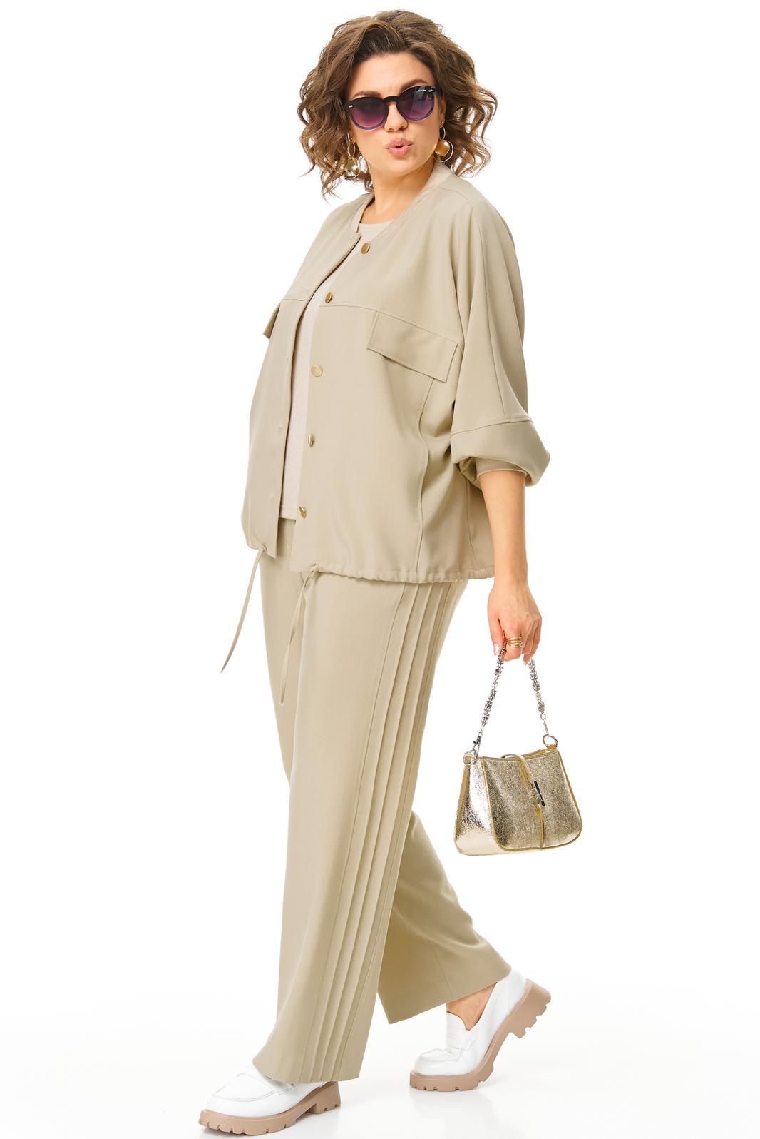Комплект выполнен из костюмной ткани средней плотности. Топ выполнен из трикотажного полотна.