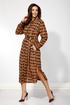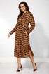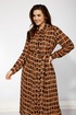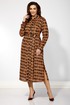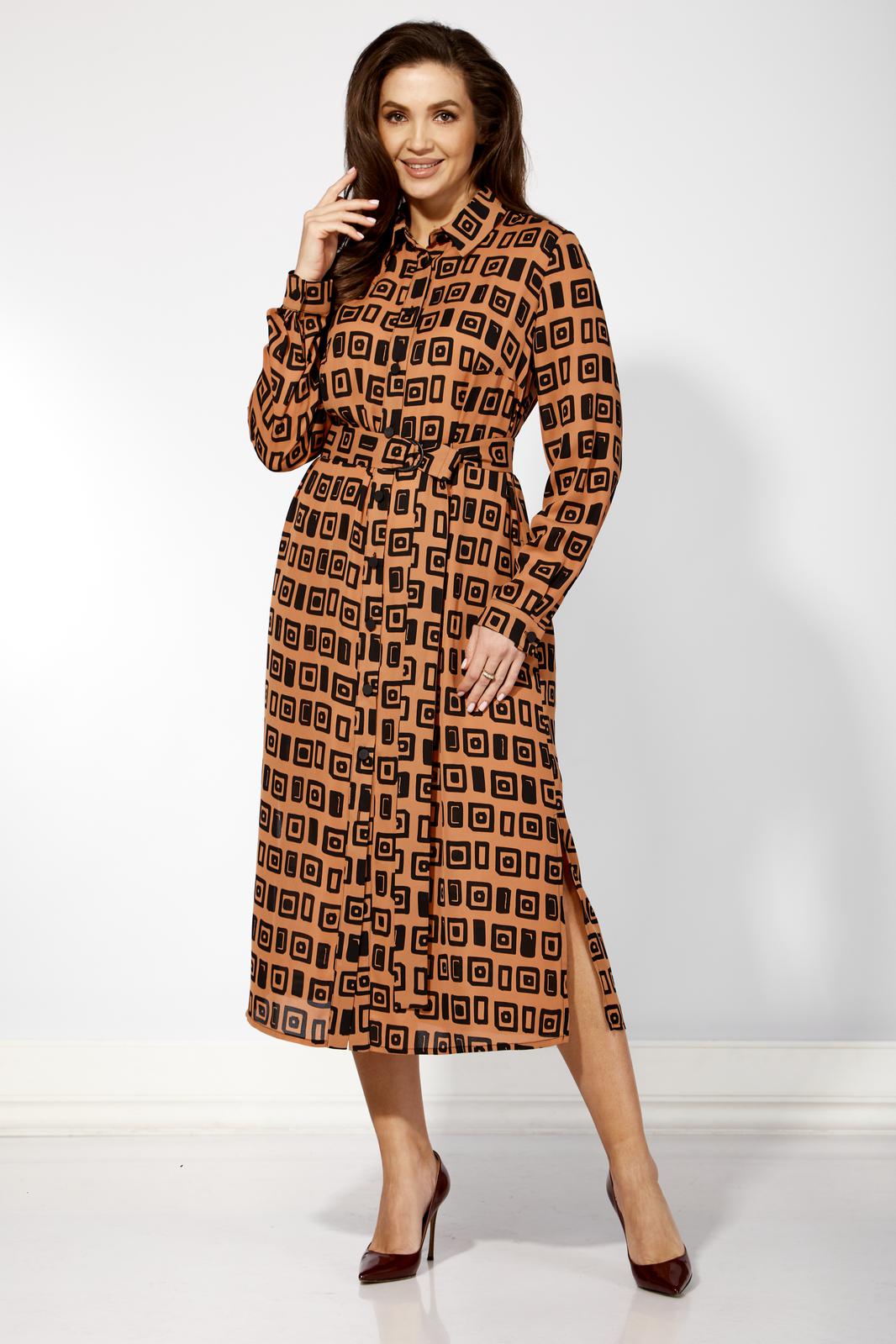 Платье рубашка свободного кроя. Рукав втачной собраный на манжету. Застежка на петли пуговицы. В боковых швах карманы. Воротник рубашечного типа. Пояс из основной ткани в комплекте. Длина рукава 60 см, длина платья 118 см
