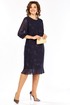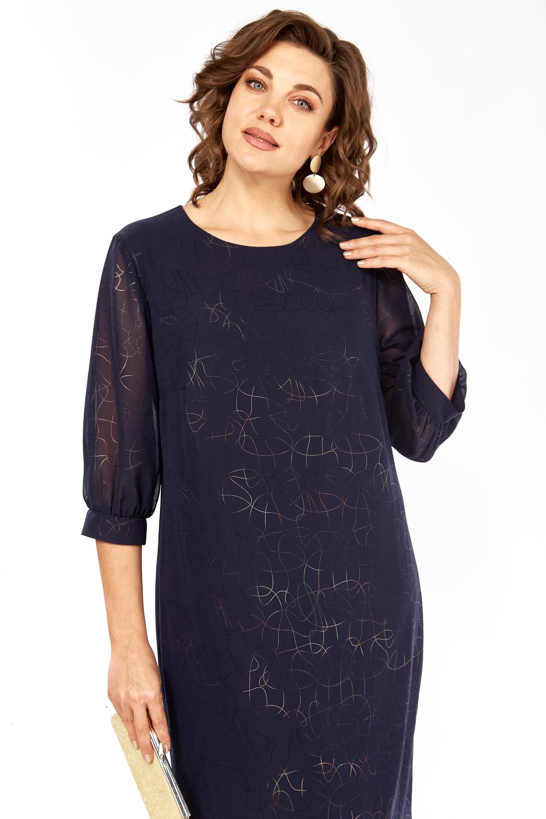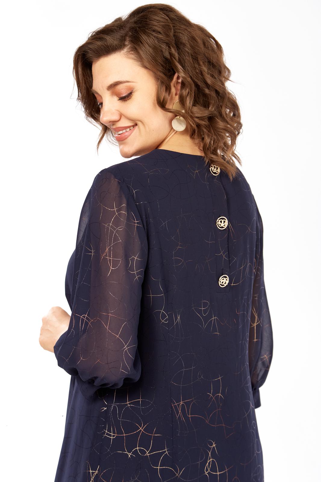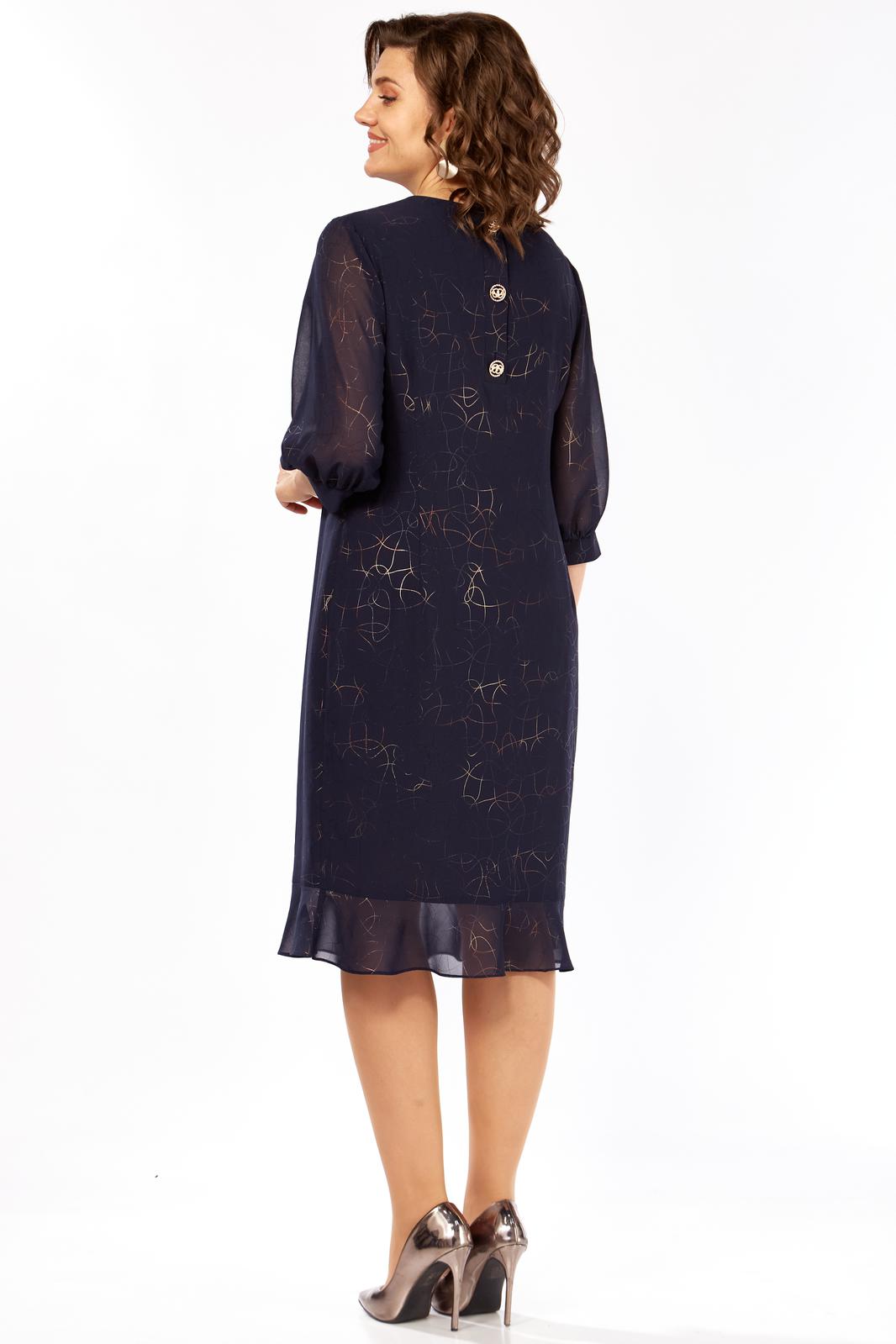 Платье женское на подкладке полуприлегающего силуэта с округлым вырезом горловины и притачным воланом по низу. По спинке застежка на планку с пуговицами. Рукав втачной одношовный с манжетой по низу. Длина платья 104 см, длина рукава 42 см, ширина рукава 24 см