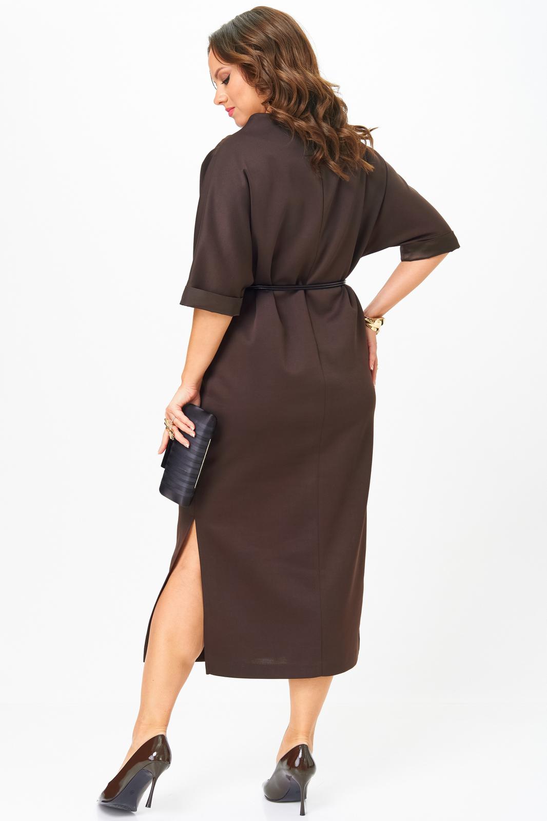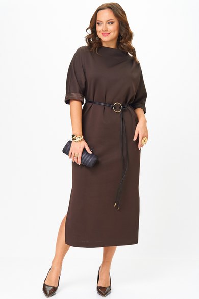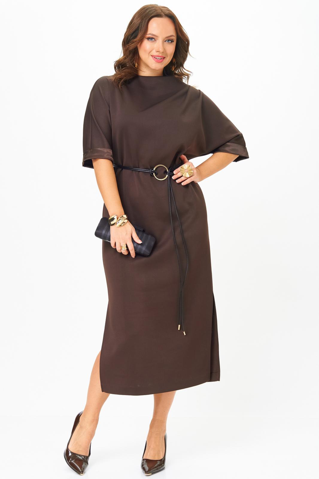 Платье прямого силуэта воротник стойка. Рукав короткий до линии локтя с манжетой из атласа. В боковых швах разрезы. Пояс в комплекте .