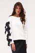 Джемпер из трикотажного полотна с хлопковыми бантами-завязками по рукаву. Боковые швы с разрезами внизу слегка перенесены на перёд.
