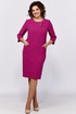 Нарядное женское платье из ткани средней плотности с добавлением вискозы. Нарядность платью придает фактура ткани - рубчик по диагонали. Силуэт полуприлегающий, длина чуть ниже колена, вырез горловины круглый с застежкой на потайную молнию по спинке. По переду функциональные карманы в рельефах. По центру переда на уровне груди фигурная отлетная деталь имитирующая застежку с декоративной брошью. По спинке в среднем шве невысокий разрез. Рукав 3/4 с небольшим разрезом по низу.