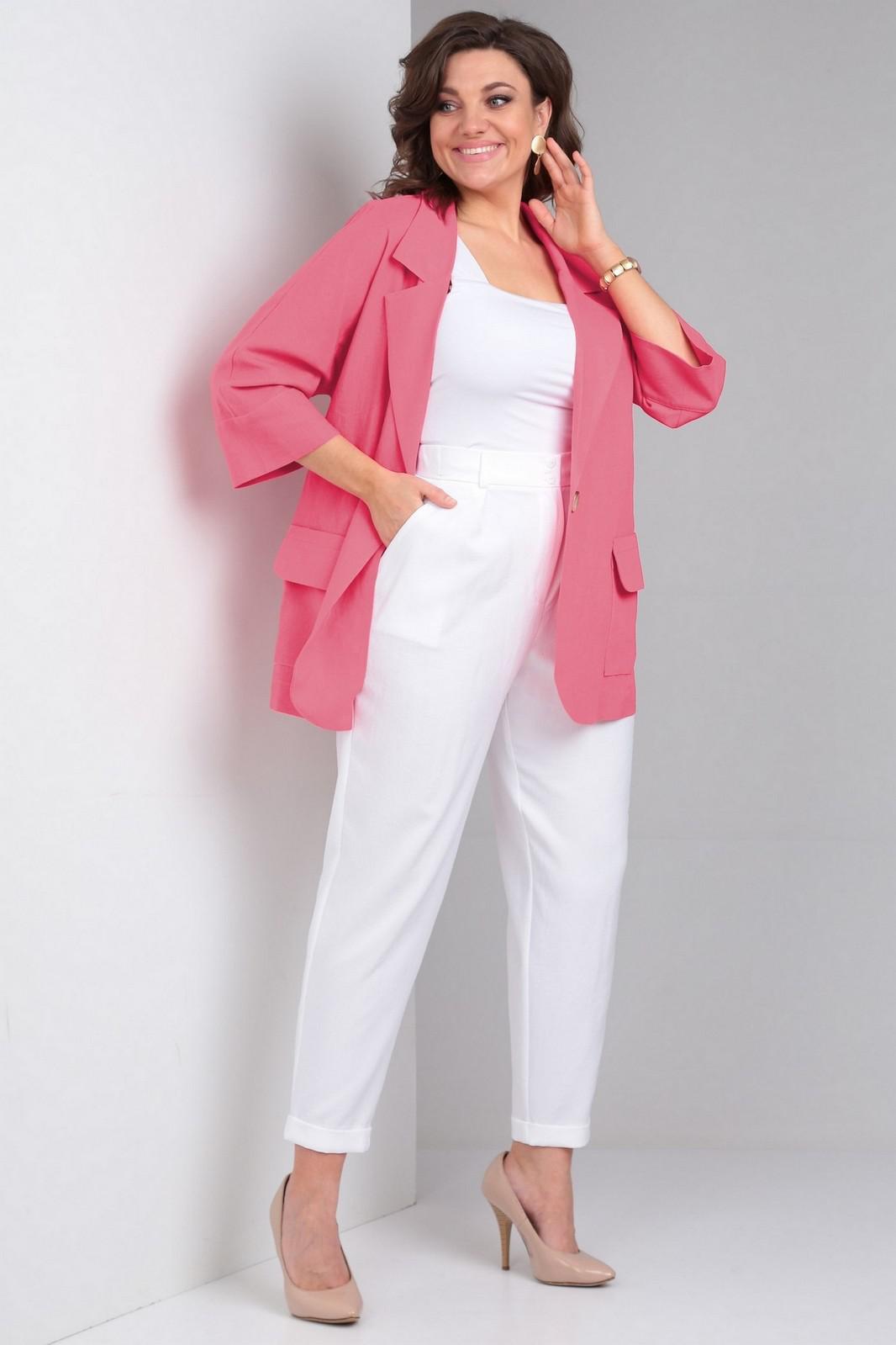 Летний женский костюм, состоящий из жакета и брюк, выполнен из ткани лен - вишер.