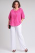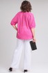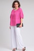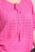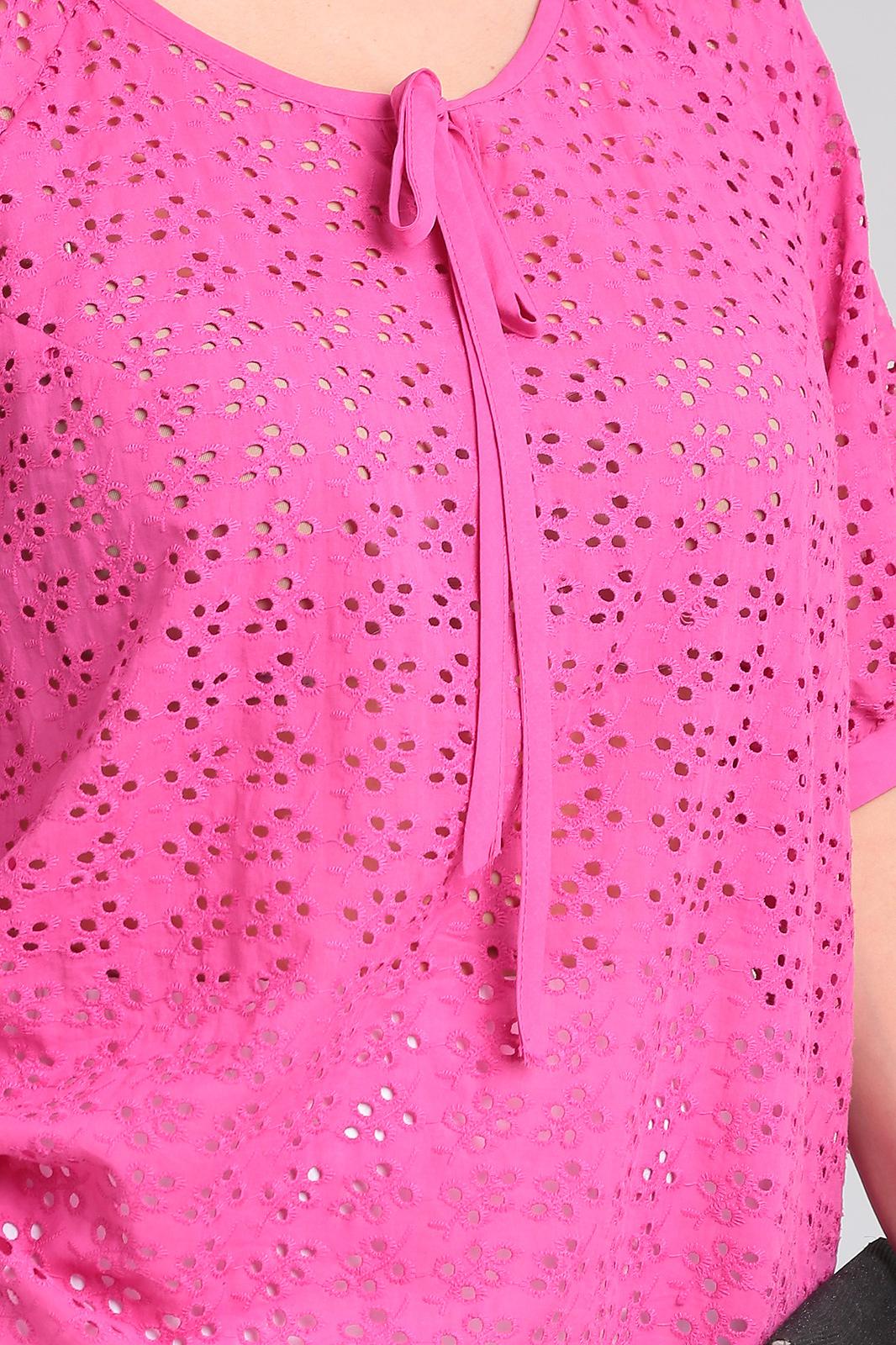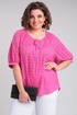 Летняя легкая блузка свободного силуэта, выполненная из хлопкового шитья. Рукав покроя реглан, горловина округлой формы со сборкой. На полочке по горловине сделана капелька на завязке, горловина окантована. Низ фигурный .Низ рукава на сборке и манжете.