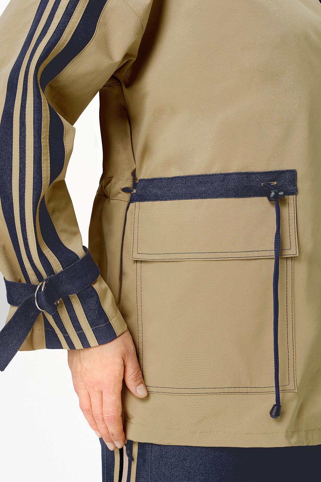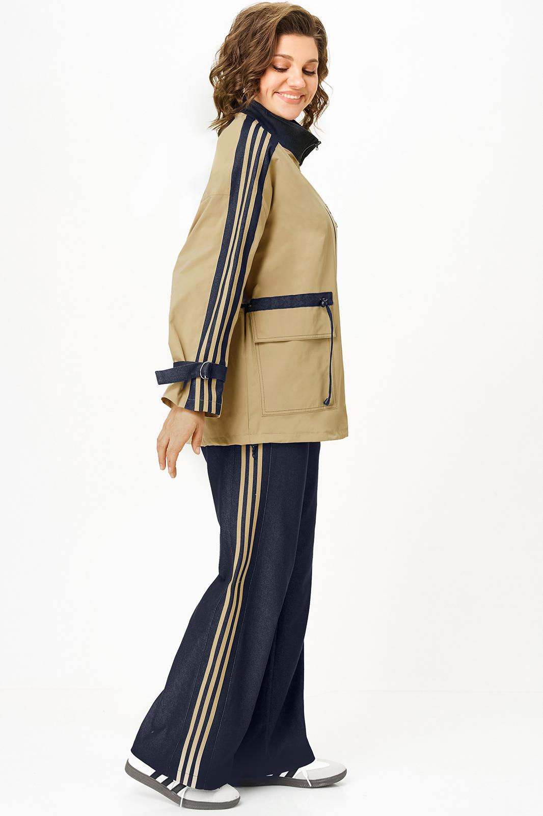 Комбинированный брючный премиум комплект в стиле спорт шик для внесезонной носки. Удлиненная куртка-ветровка без подкладки, по талии с кулисой, свободного силуэта на молнии, с накладными карманами, воротник - высокая отложная стойка, по рукаву контрастная отделка и регулируемый хлястик . Спинка с кокеткой. Брюки средней посадки, прямые к низу с декоративными лампасами , без застежки , на круговой резинке по талии , с карманами в боковых швах.