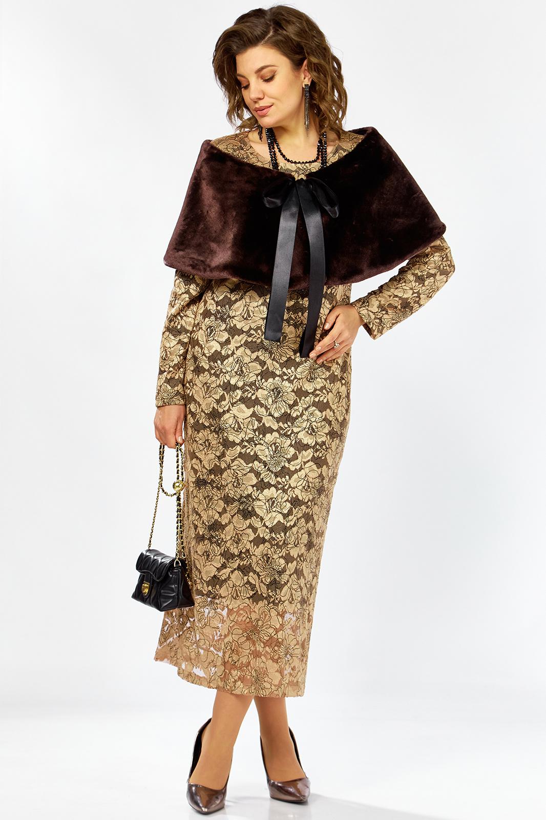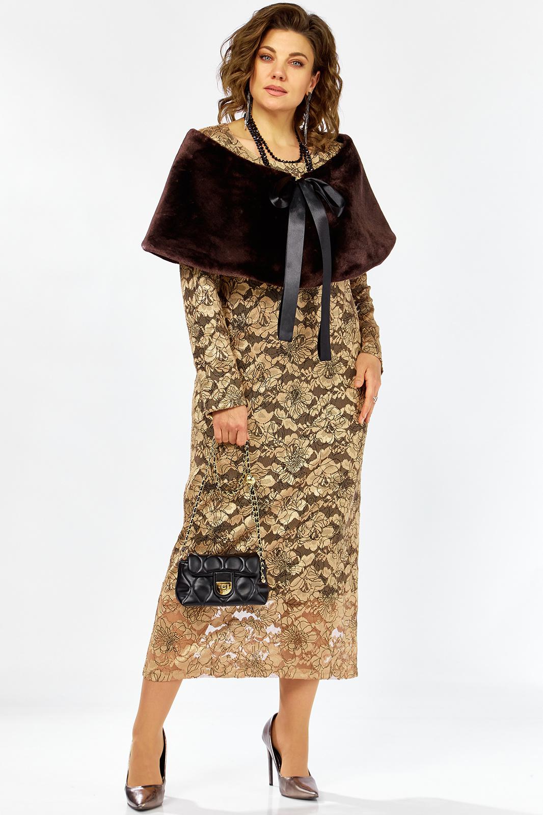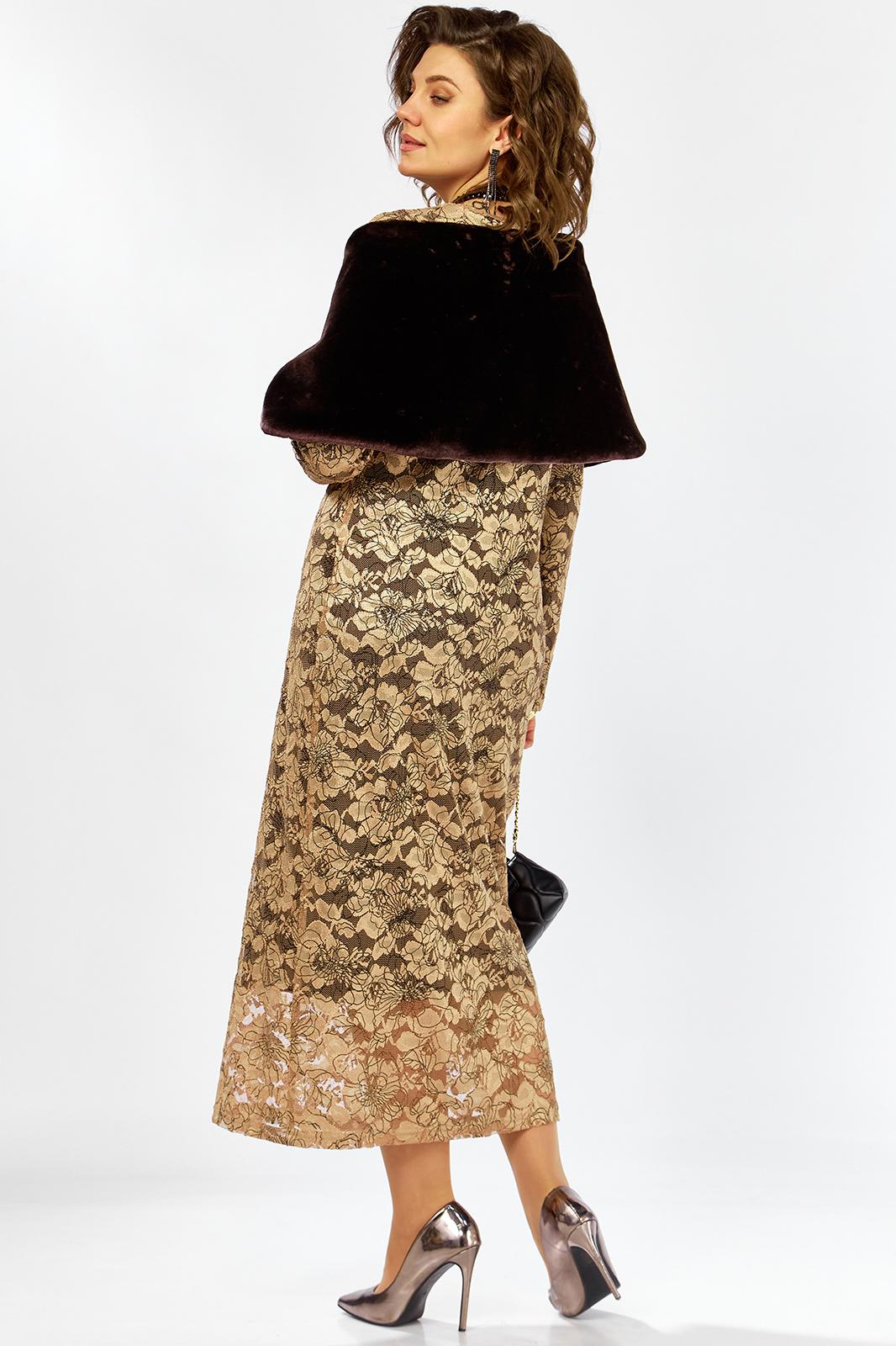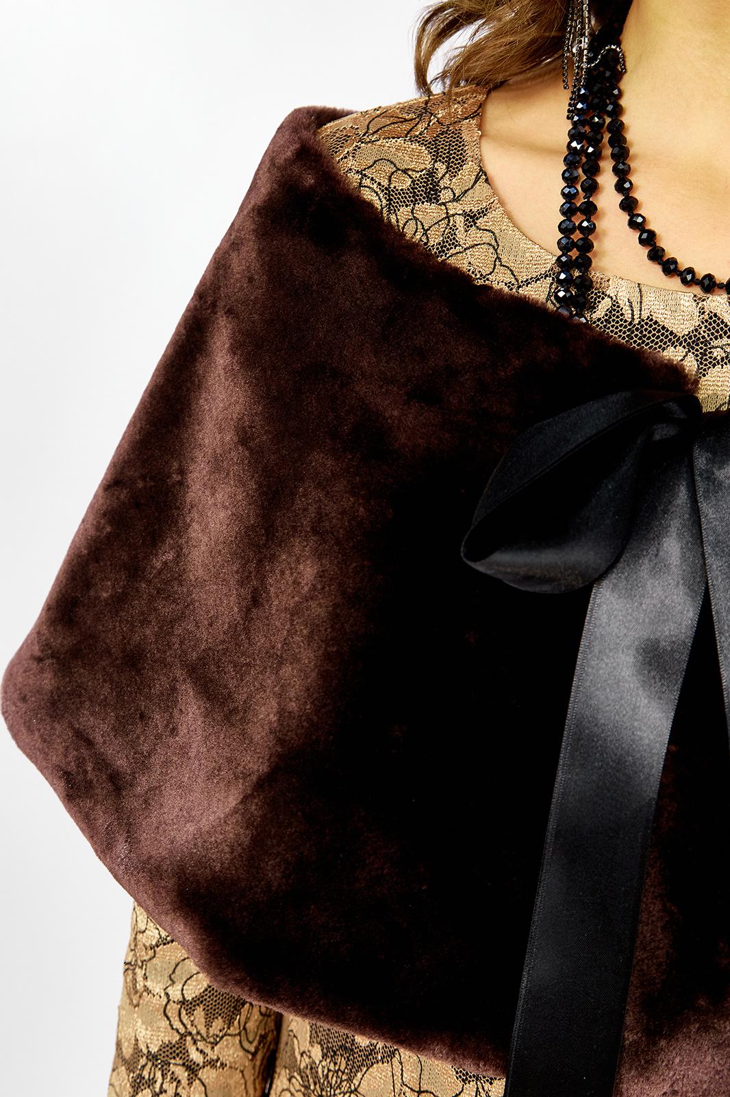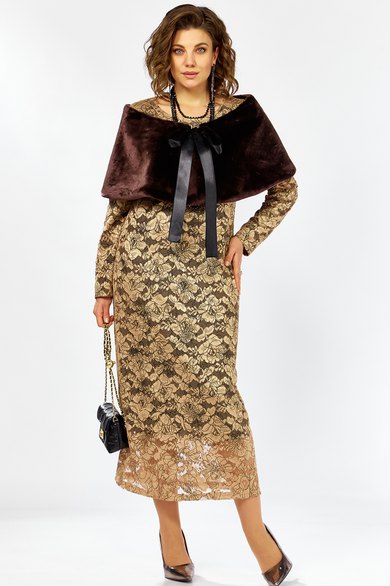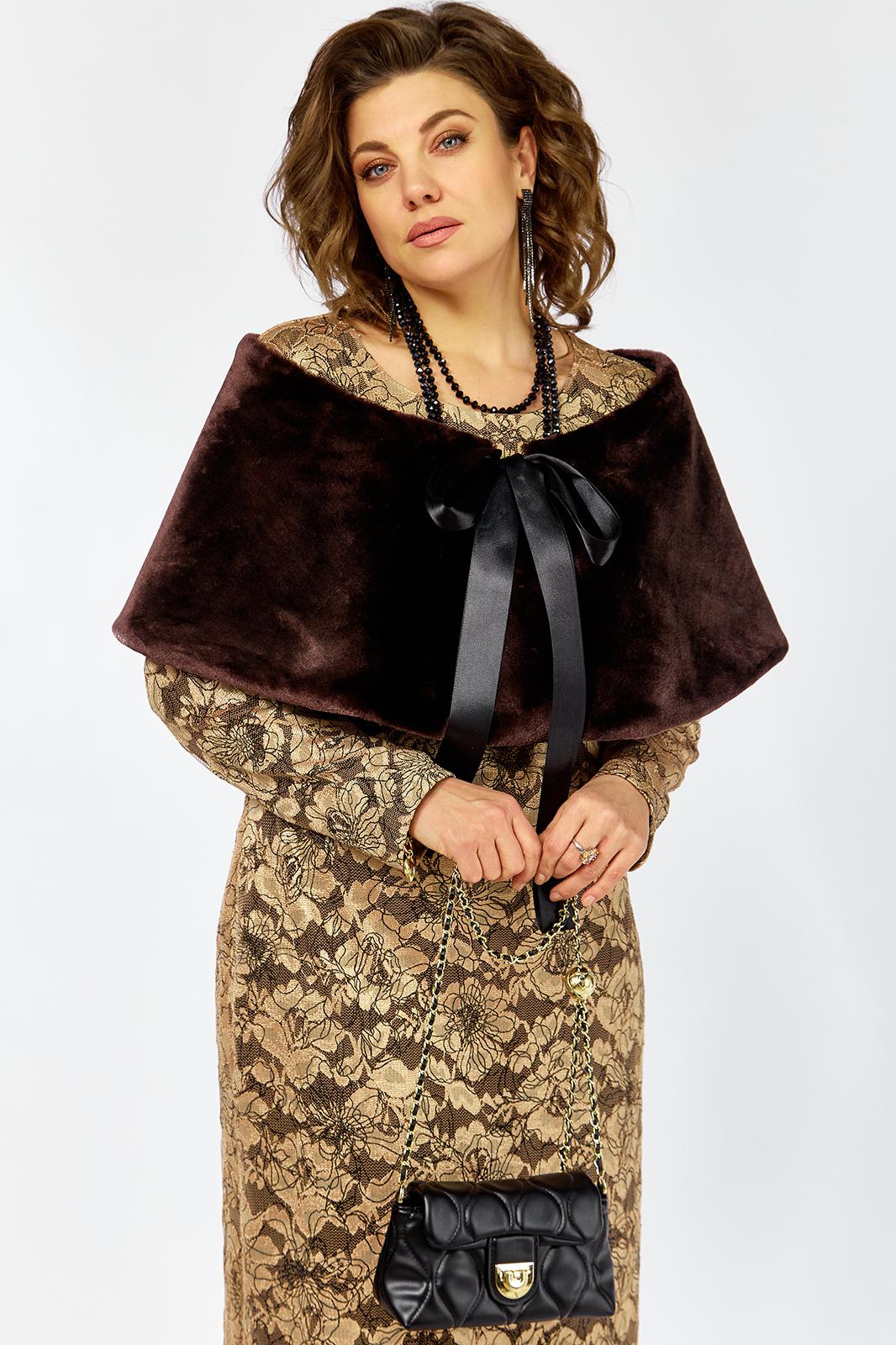 Элегантный и утонченный комплект с изящной меховой горжеткой, созданный для особых случаев в основе платье полуприлегающего силуэта на трикотажной подкладке из кружевного гипюра с контрастным рисунком в цветочной тематике, мягко драпируется , создавая воздушный легкий силуэт длинные рукава и свободный крой добавляют образу благородства и загадочности .