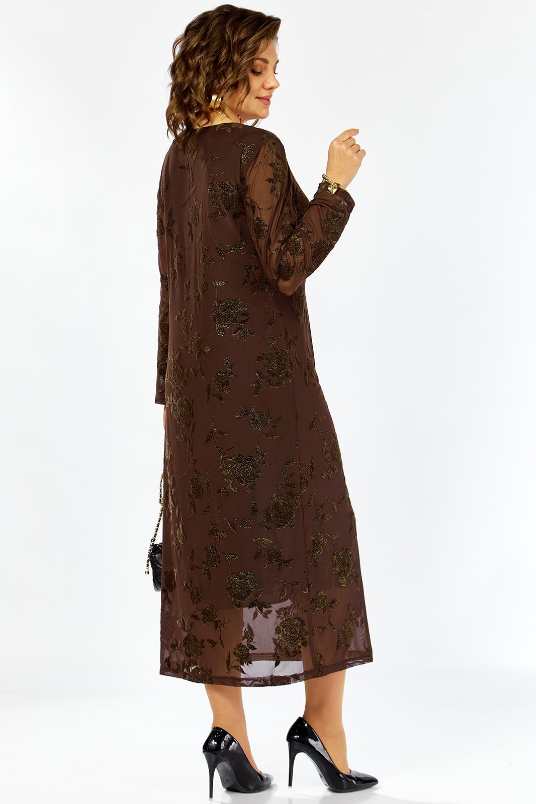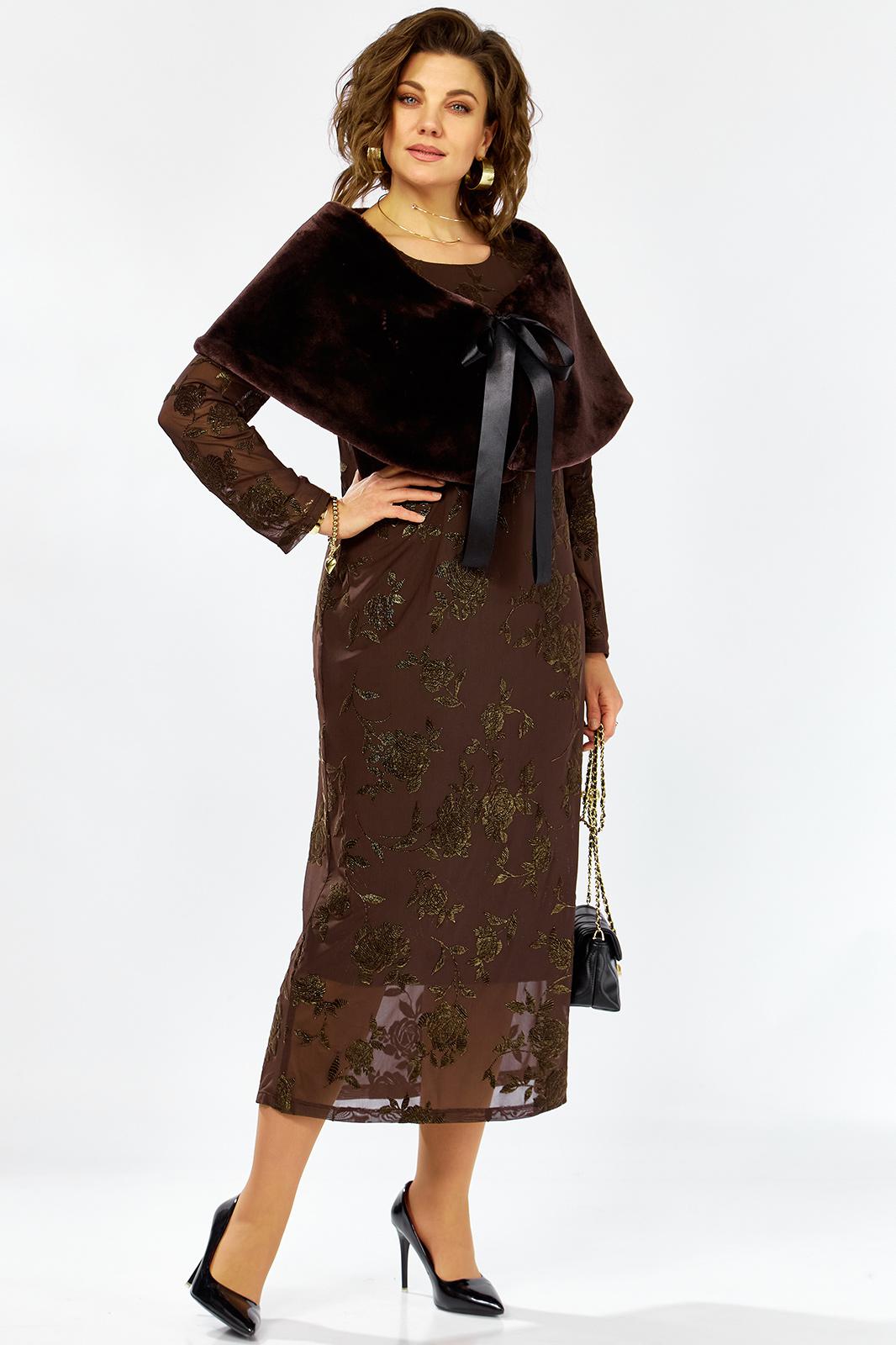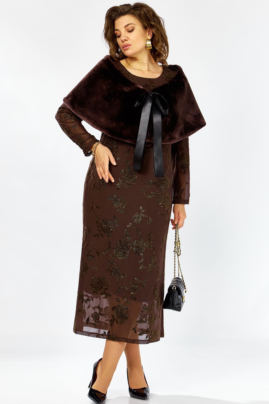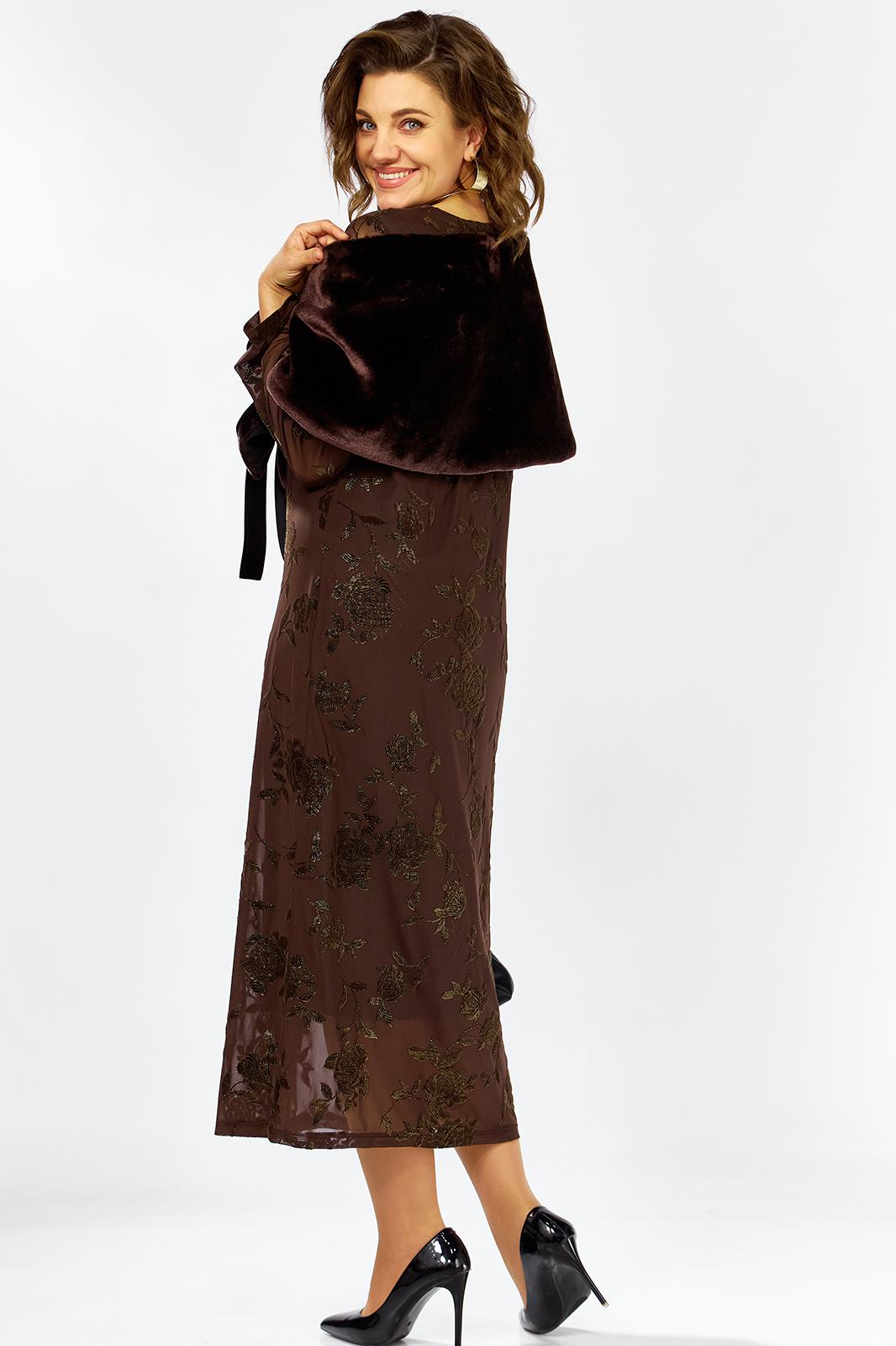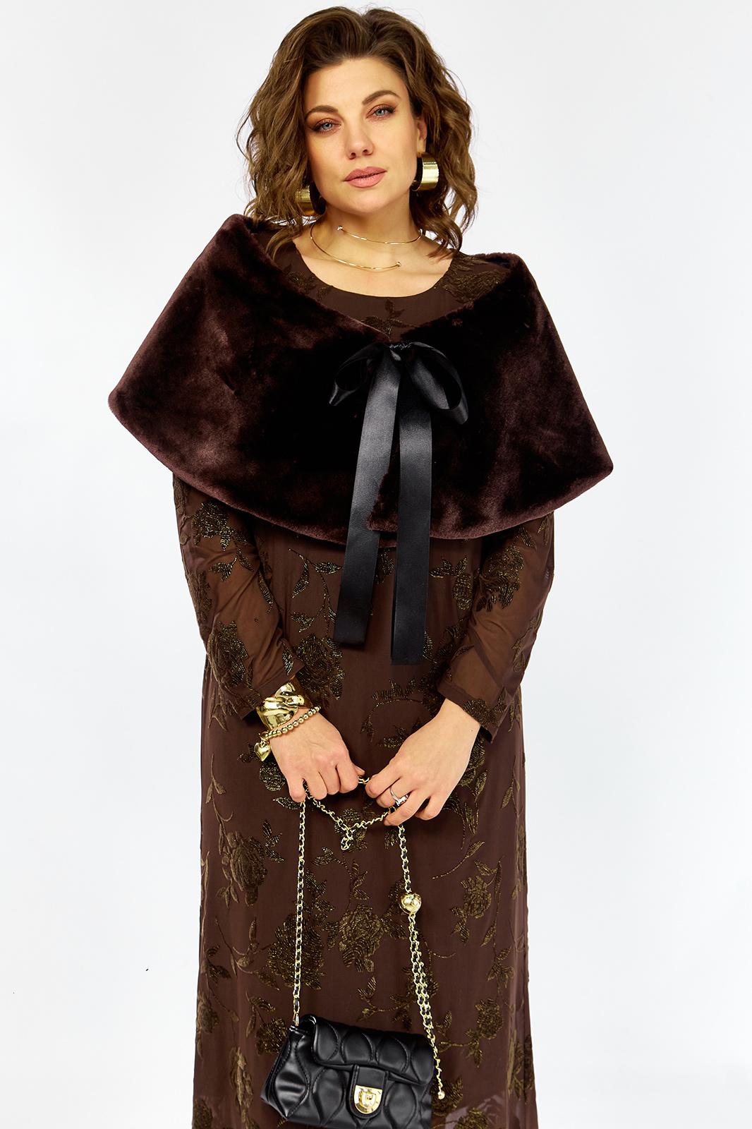 Роскошный плательный комплект с изящной меховой горжеткой . Платье на трикотажной подкладке полуприлегающего силуэта из мягкой стретч-сетки украшенной флоковым напылением с позолотой создает эффект дорогого кружевного орнамента. Образ дополняет роскошная