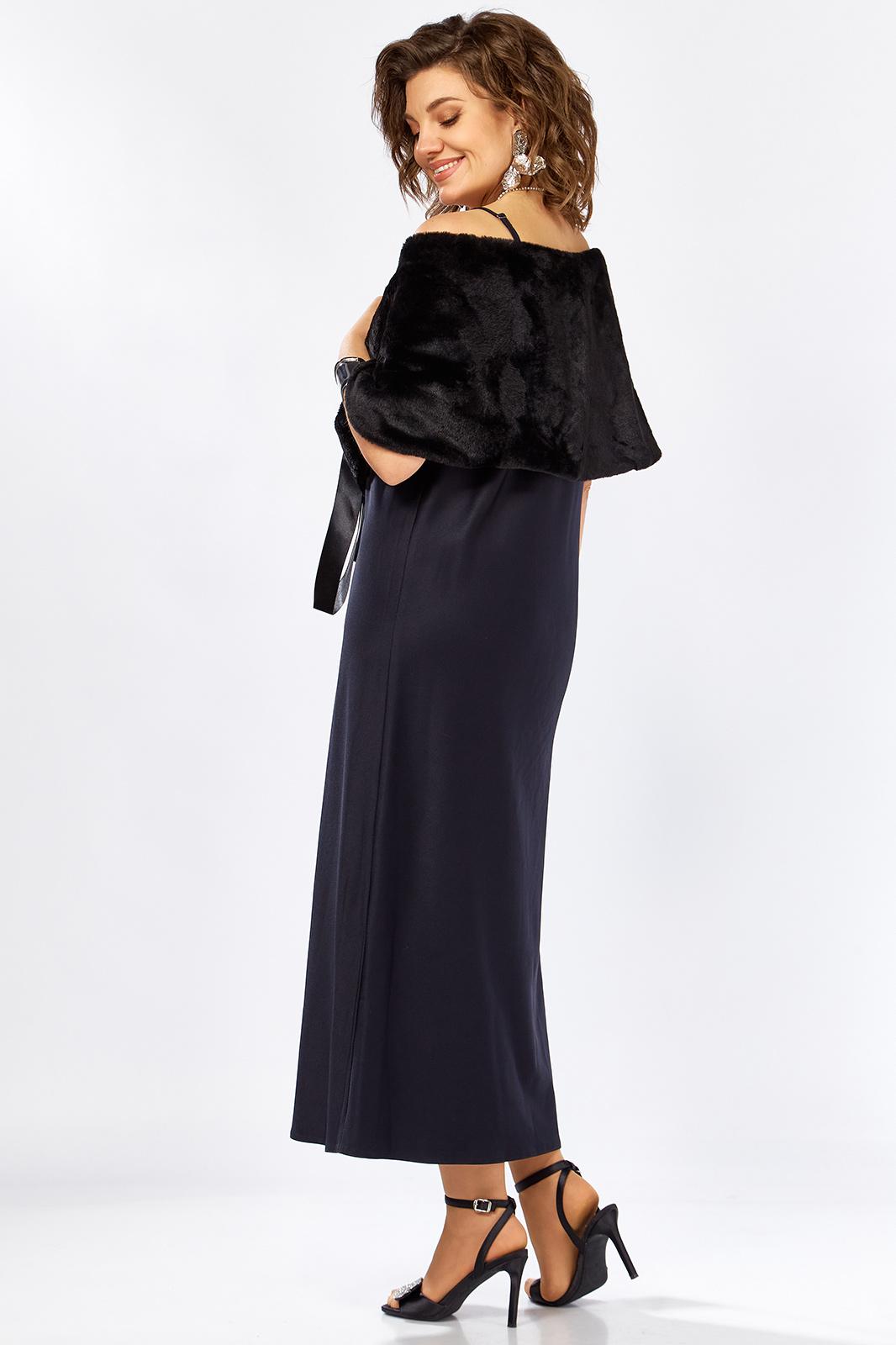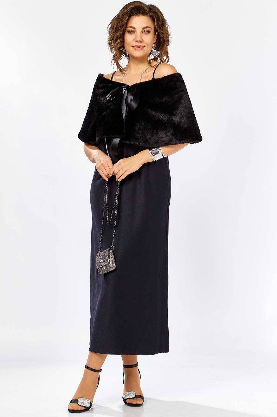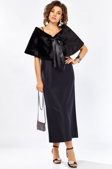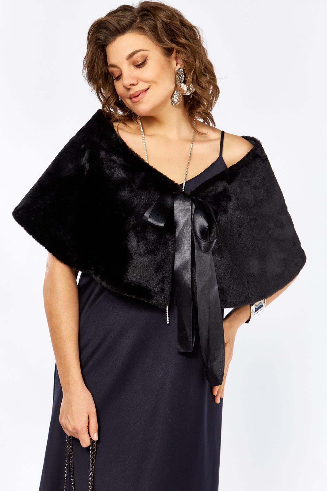 Изысканный комплект сочетает в себе платье из плотного атласа, свободного А образного силуэта ,изящной меховой горжеткой создавая образ утончённой элегантности женственности