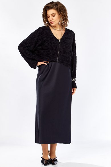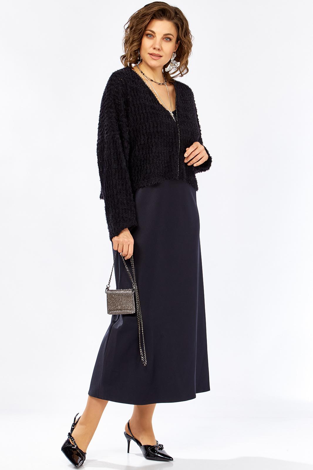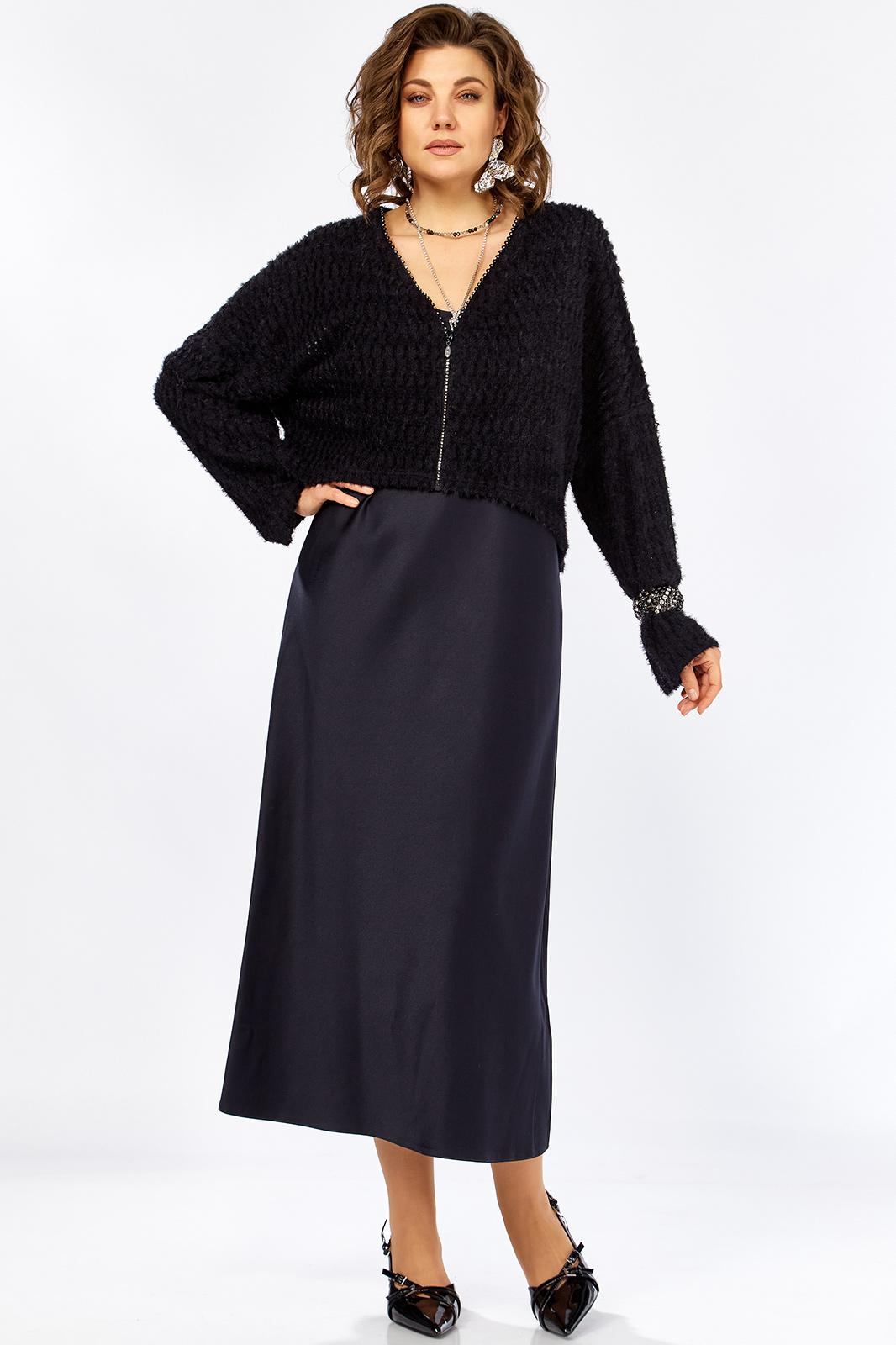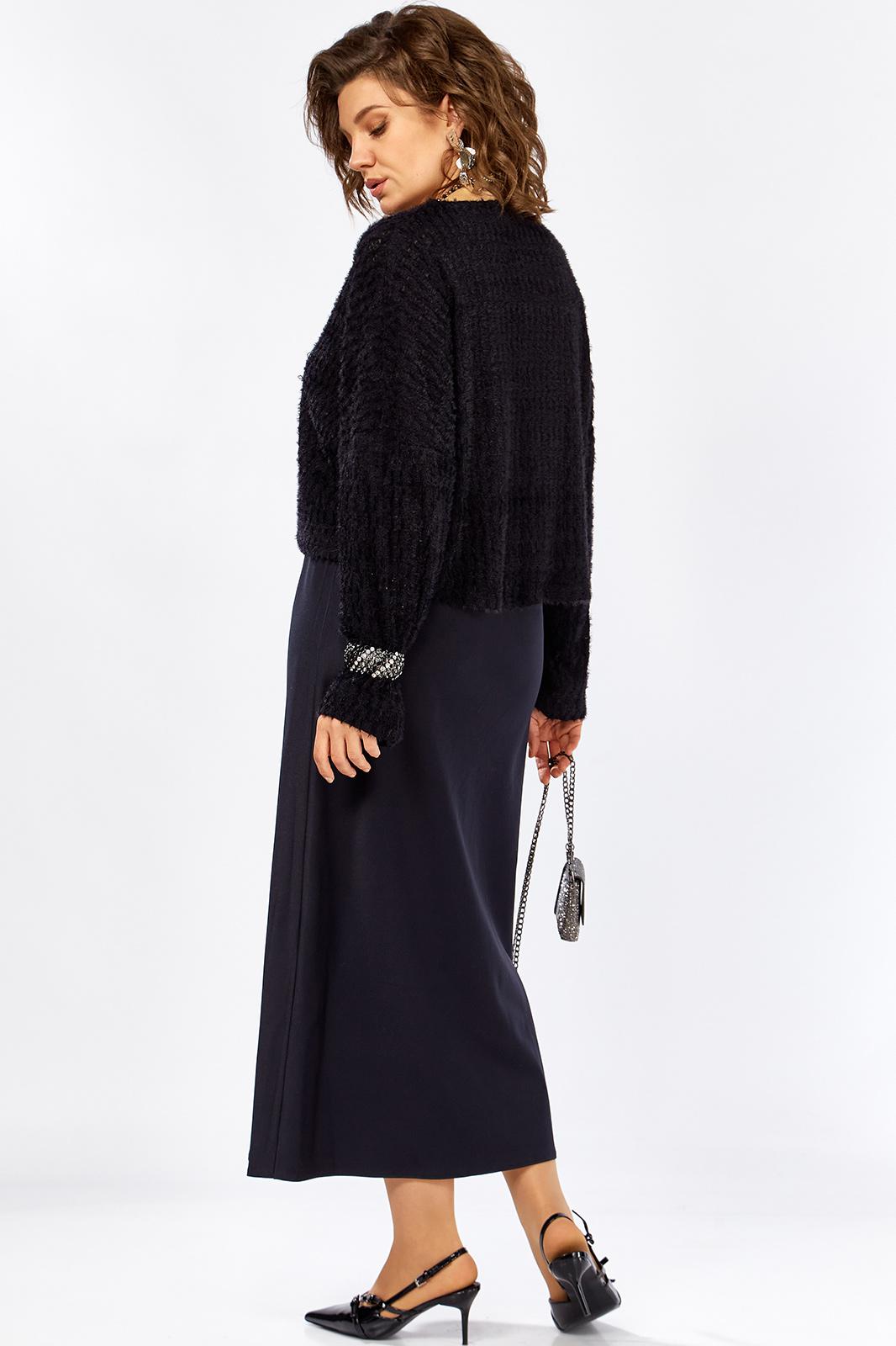 Лаконичный крой делает платье универсальным для любого случая в комплекте объемный джемпер из пушистой трикотажной травки, создает мягкий контраст фактур добавляет образу тепла и делает его более современным и расслабленным
