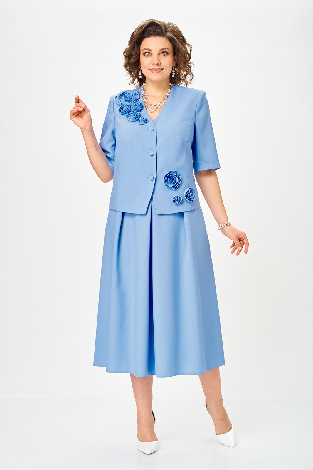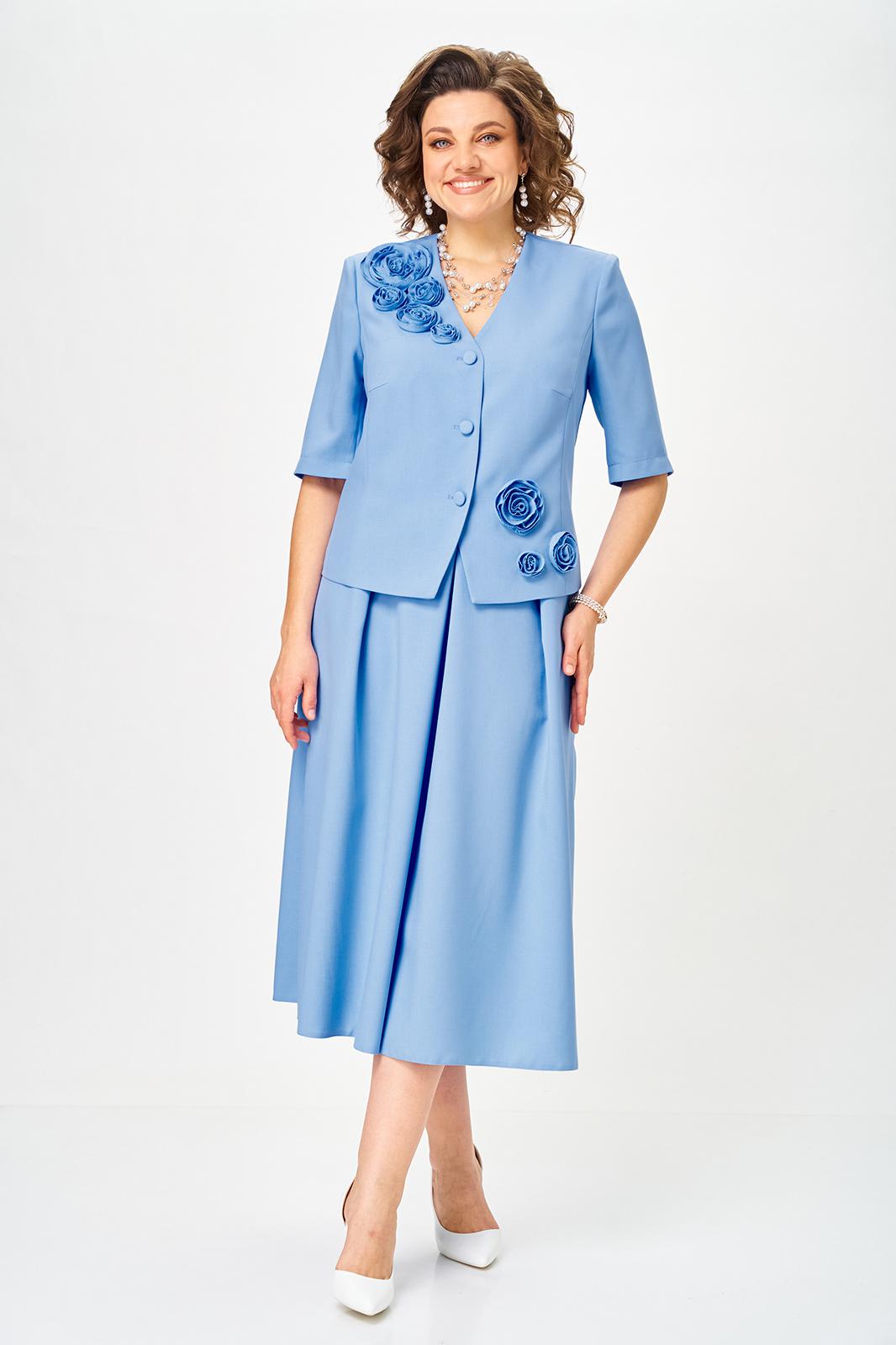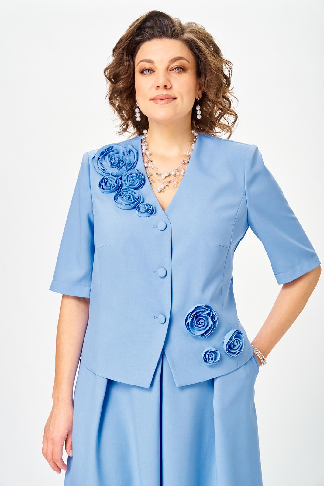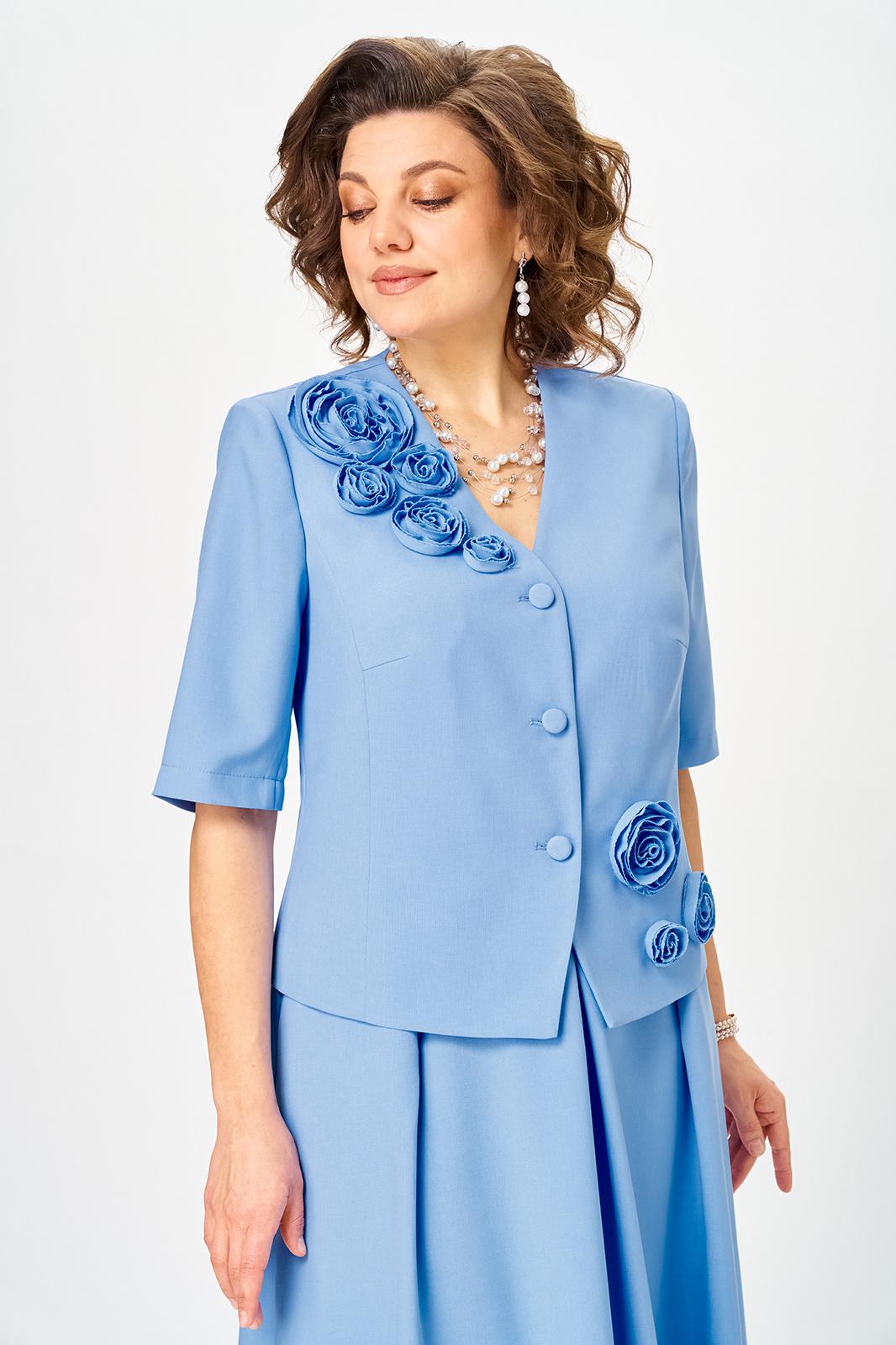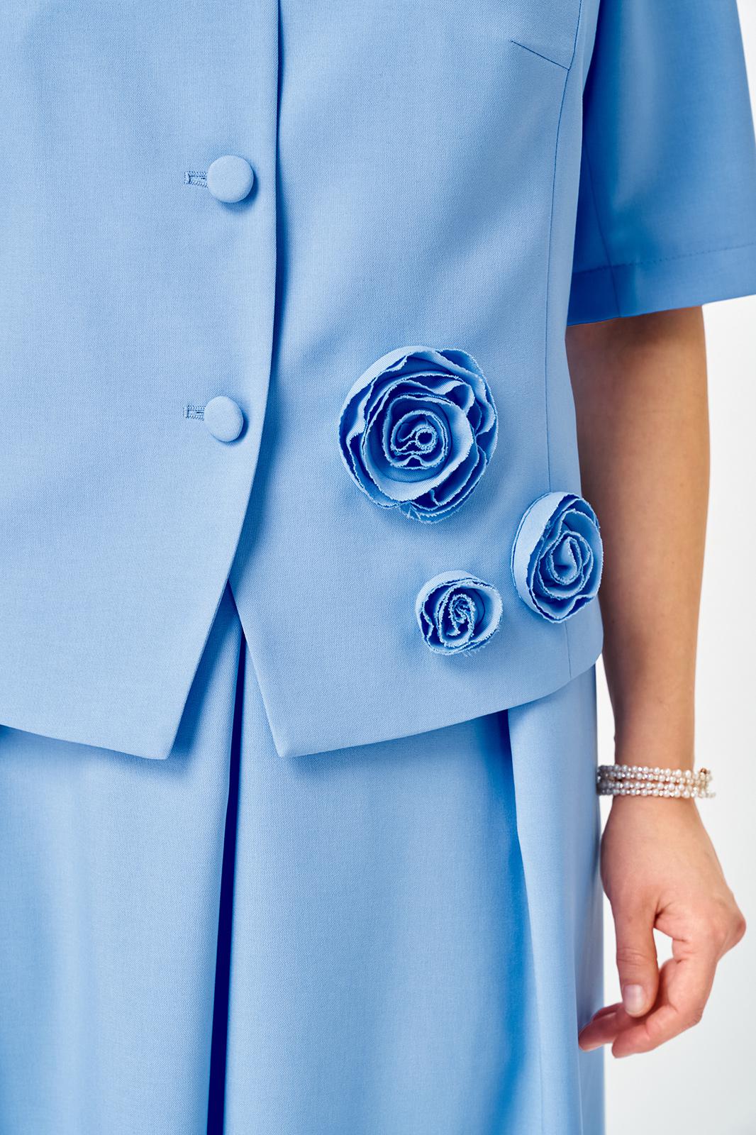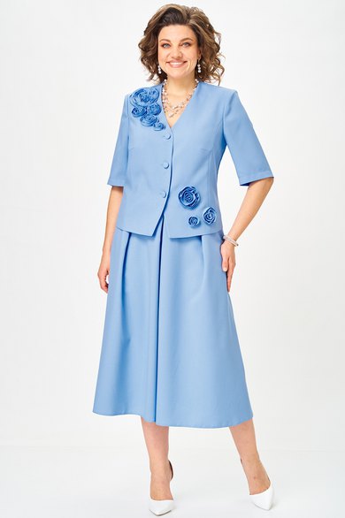 Элегантный юбочный костюм, наряд для торжественных и праздничных мероприятий. Обеспечит вашему образу максимум внимания и комплементов , благодаря безупречному подбору цвета и художественному оформлению цветочной аппликации ! Жакет без подкладкой, полуприлегающего силуэта с v образным вырезом , рукав втачной двух шовный . Юбка без подкладки, на поясе с боковыми резинками, расклешенного силуэта со складками по переду и боковыми карманами .Возможна замена фурнитуры.