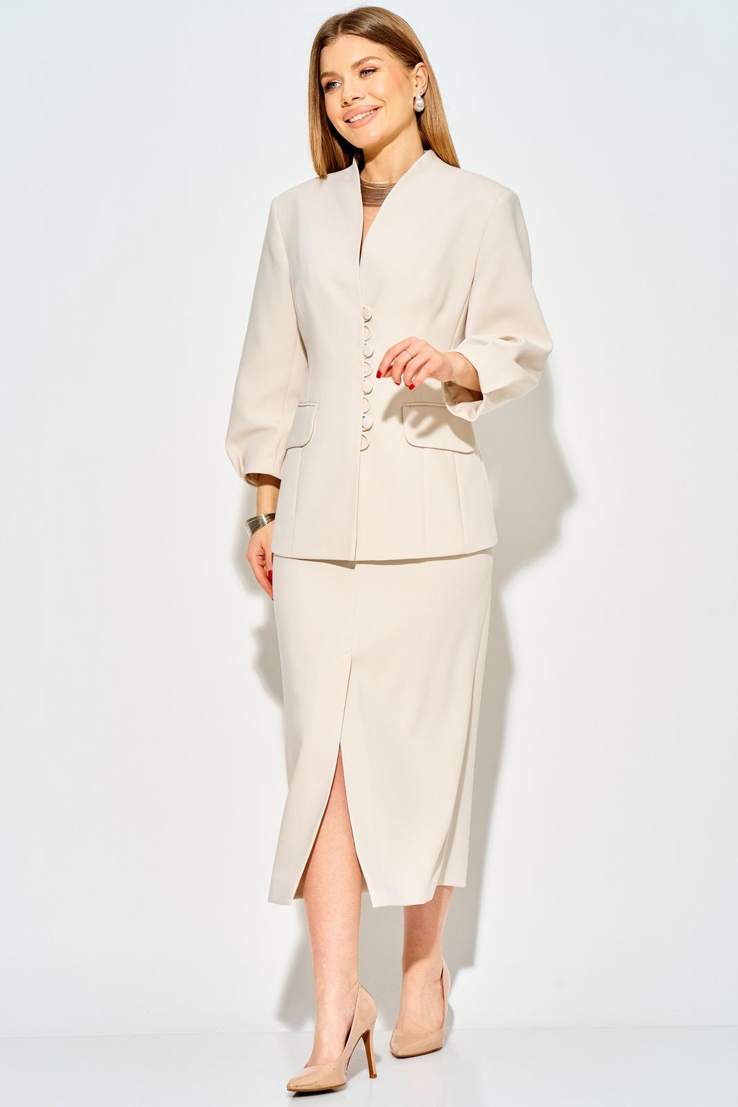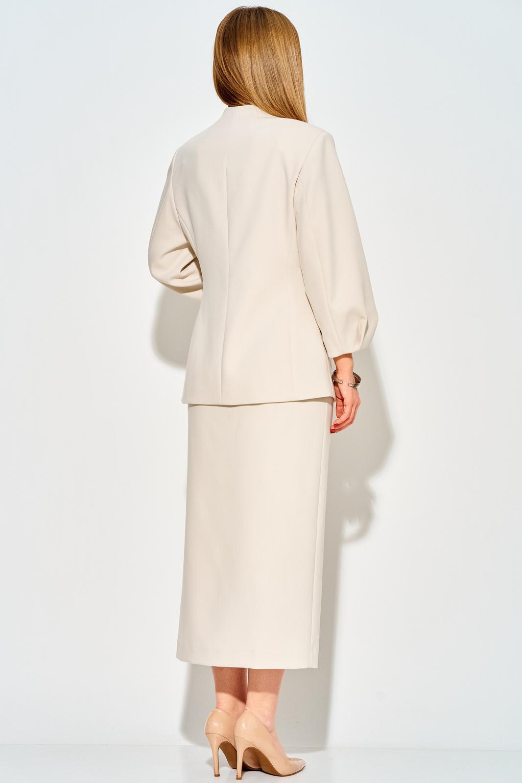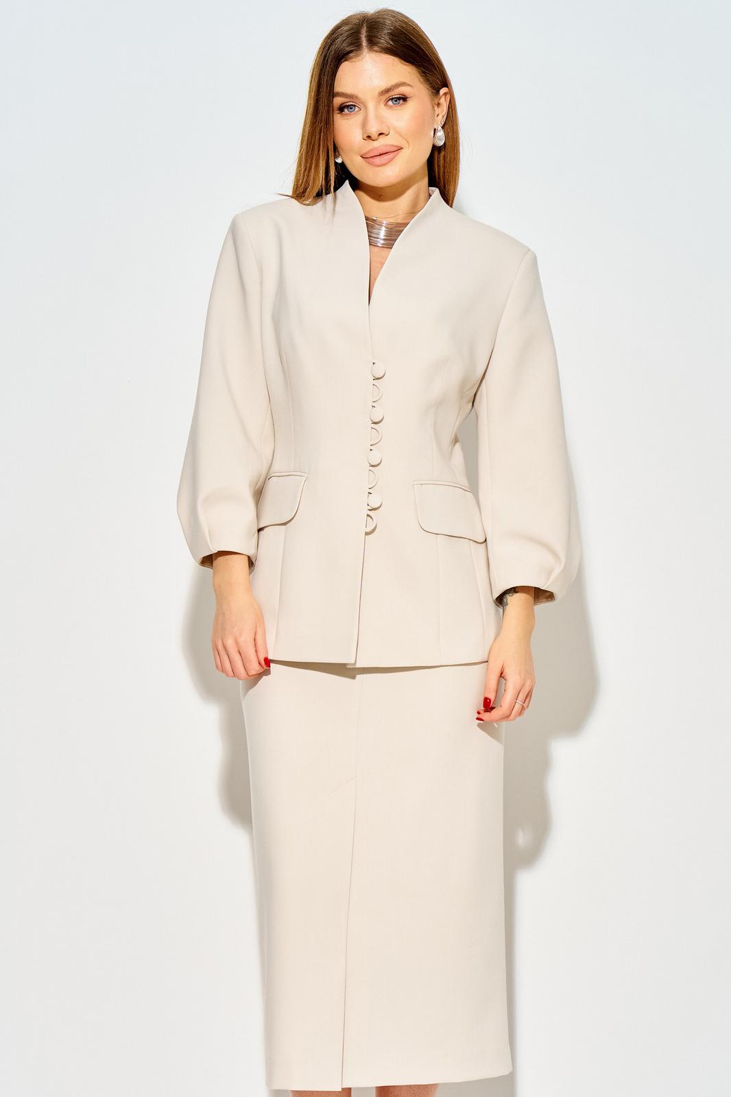 Костюм выполнен из костюмной ткани, жакет на подкладке. Декор может отличаться от представленного на фотографии.