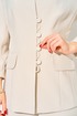 Жакет прилегающего силуэта идеально сидит на фигуре и подчеркивает её достоинства. Длина ниже линии бедер. С центральной застёжкой на пуговицы и навесные петли, жакет не только практичен, но и привносит нотки утончённости в ваш образ. Его детали, включая отрезные бочки и фигурные клапаны, создают эффектный визуальный акцент, а талиевые вытачки добавляют изысканности и облегают фигуру. Спинка жакета с плечевыми вытачками и средним швом. Втачные рукава длиной 3/4 с аккуратными складками на обтачке придают образу лёгкость и стиль.
