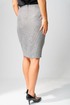 Юбка плотно облегающая вверху и зауженная к низу, на подкладке, длиной до коленей. Застежка на потайную тесьму-молнию в среднем шве заднего полотнища. Переднее полотнище юбки с запахом фигурной формы, вверху с горизонтальным подрезом и со складкой. Заднее полотнище со средним швом, на каждой половинке обработаны по две вытачки. Верхний срез юбки обработан обтачкой.