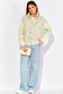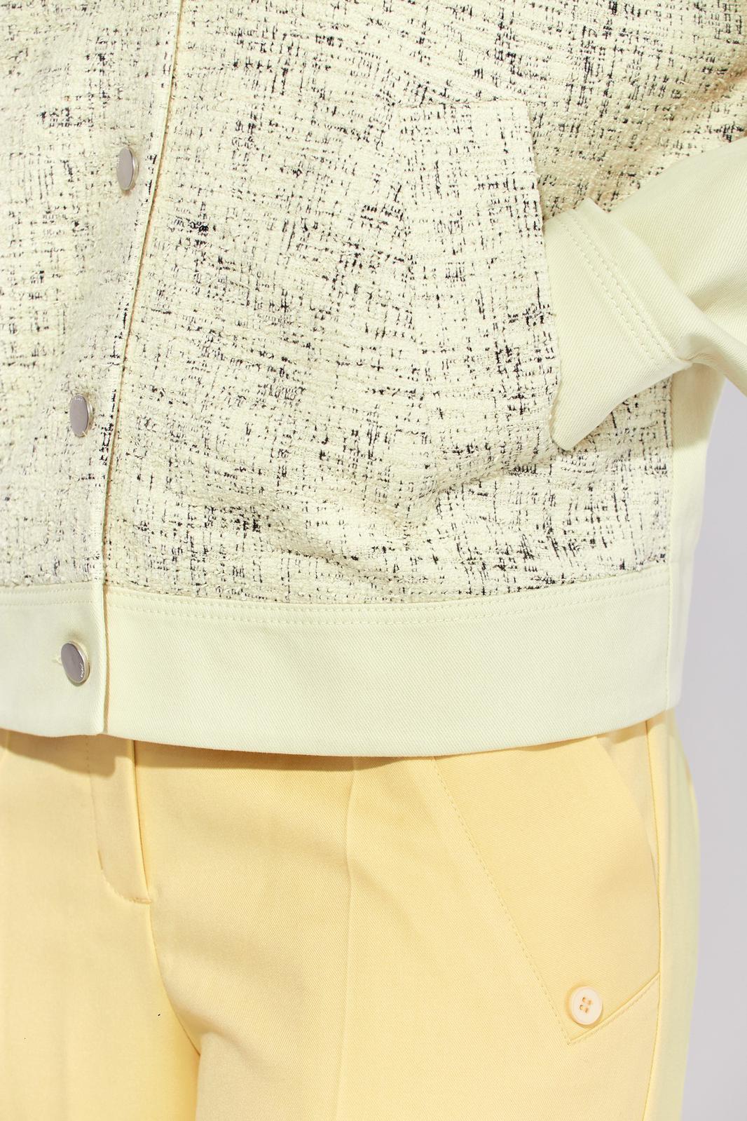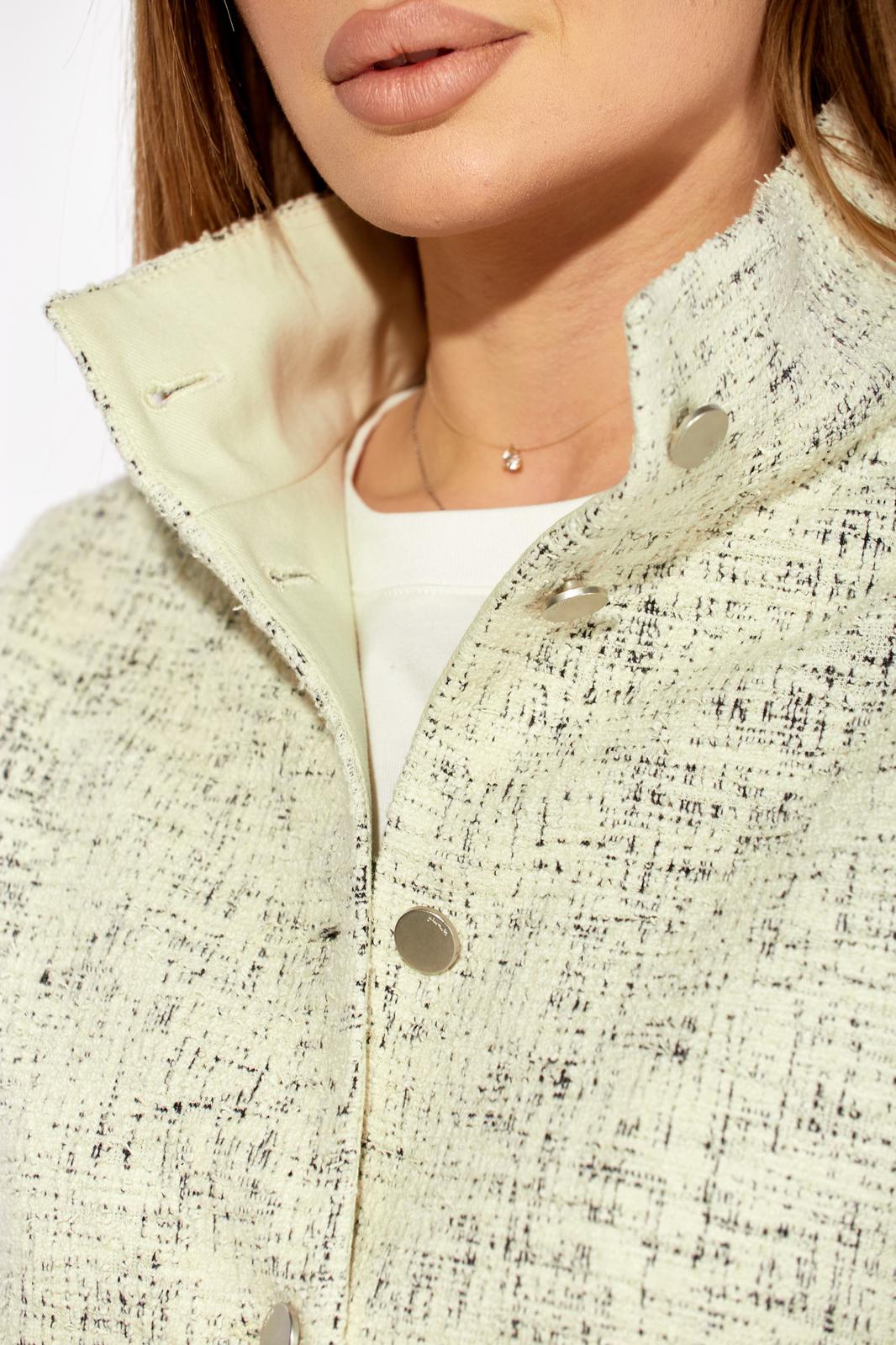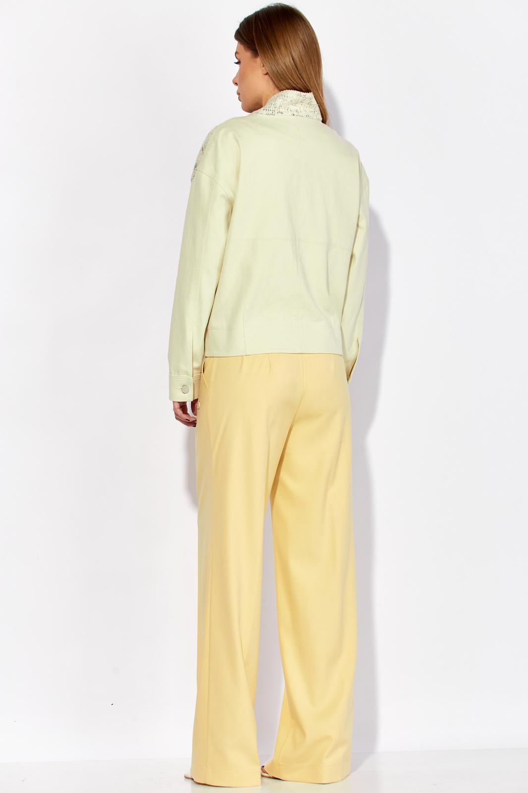 Полочка жакета выполнена из трикотажа, рукава и спинка из джинса, жакет без подкладки. Декор может отличаться от представленного на фотографии.