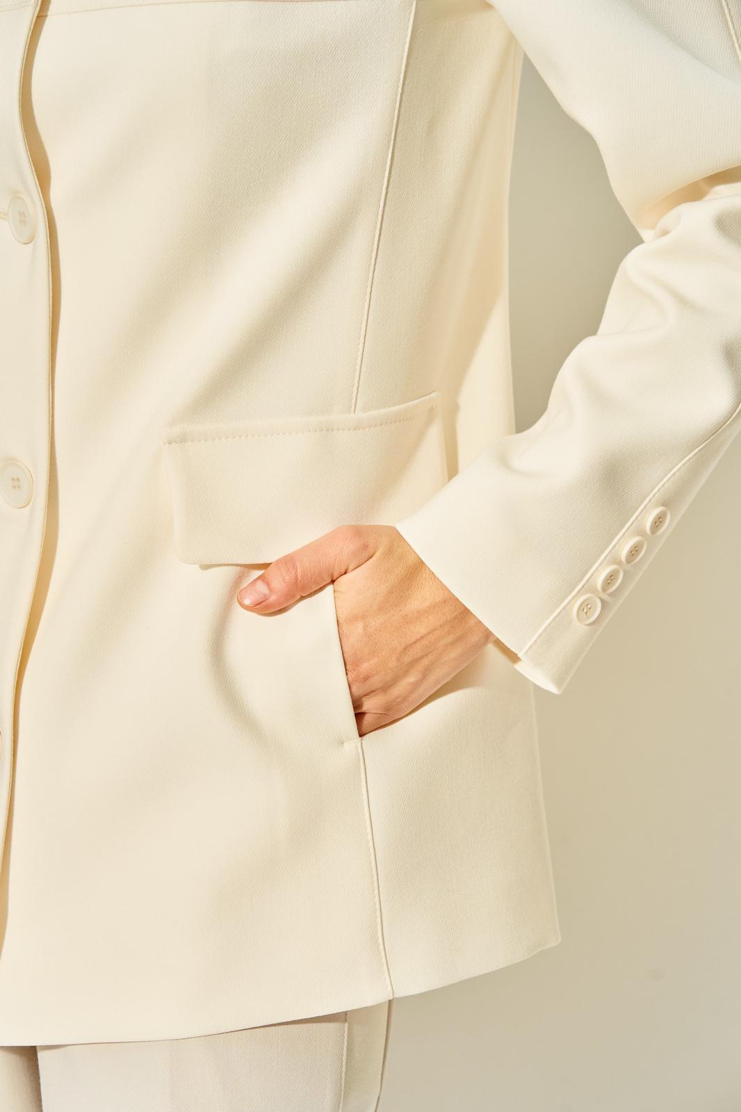 Жакет выполнен из костюмной ткани, на подкладке. Ткань не тянется. Декор может отличаться от представленного на фотографии.