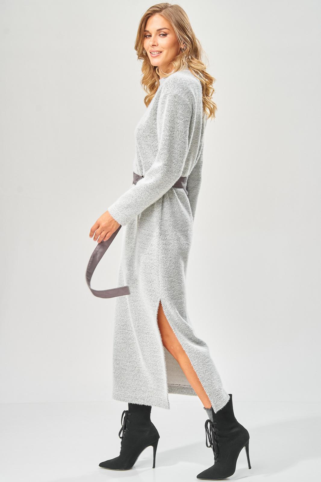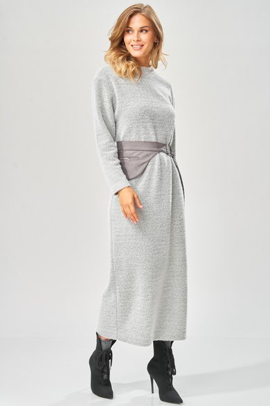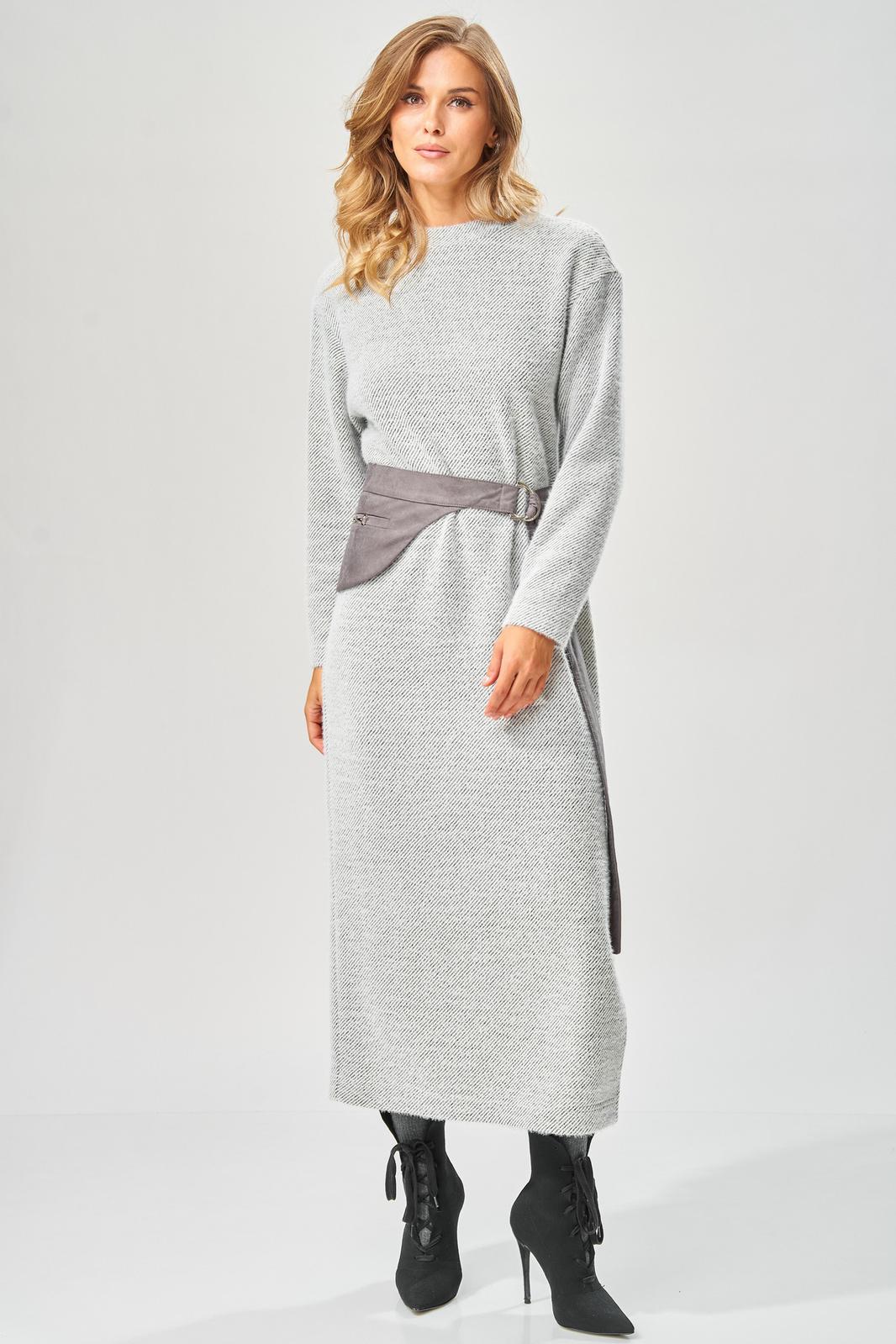 Уютное стильное повседневное платье длиной в пол с оригинальным поясом для осенне-зимнего сезона.