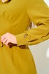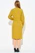 Вырез «V-образной» формы, обработан обтачкой. Перед и спинка платья отрезные по линии талии. Перед со средним швом, который заканчивается разрезом, и декоративными талиевыми вытачками. Рукава втачные одношовные, по низу обработаны по 3 складки, на которых декоративно прикреплены по 3 пуговицы. Низ рукавов обработан обтачкой. На уровне талии расположены шлевки.