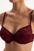 Бюстгальтер из эластичного кружева и эластичного трикотажного полотна. Чашка выполнена из эластичного кружева в нижней части присутствует дубляж. Бочки выполнены из эластичного трикотажного полотна. В модели присутствуют каркасы («косточки»).