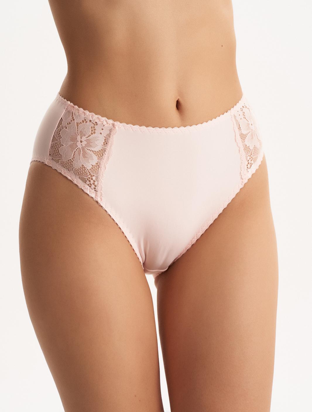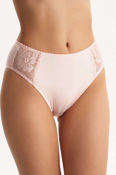 Полноразмерные трусы слипы с высокой линией талии (закрывают пупок), выполненные из хлопка и декорированные вставками из кружева по бокам. Подкладка ластовицы из 100% х/б.