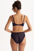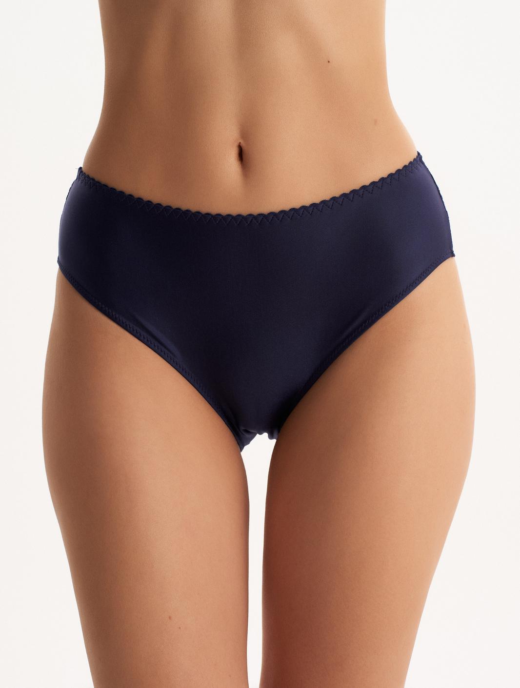 Трусы с высокой линией талии из эластичного трикотажного полотна (микрофибра). Задняя деталь полностью из эластичного кружева. Подкладка ластовицы из 100% х/б.