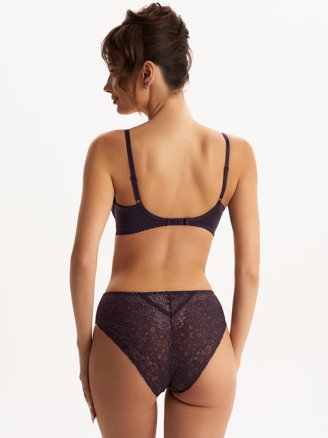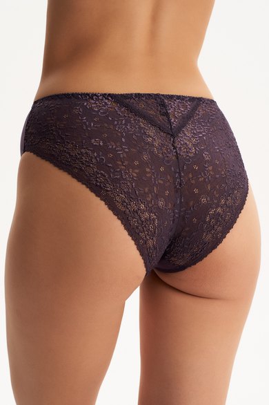 Трусы с высокой линией талии из эластичного трикотажного полотна (микрофибра). Задняя деталь полностью из эластичного кружева. Подкладка ластовицы из 100% х/б.
