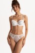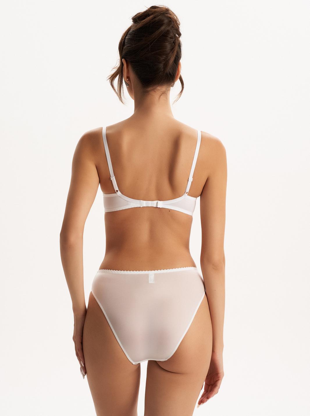 Бюстгальтер с мягкой чашкой, выполненный из эластичного трикотажного полотна и декорированный эластичным кружевом в верхней части чашки. В модели присутствуют каркасы (косточки). Бретели регулируются по длине. Ширина бретелей увеличивается пропорционально увеличению размера (1,0 см, 1,5 см, 2,0 см, 2,5 см). В самых маленьких размерах застежка на 1 крючок из двух позиций, в большинстве размеров застежка на 2 крючка из трех позиций; в больших размерах на 3 крючка с выбором из трех позиций. Важная особенность – тройное членение чашки, что обеспечивает скругление формы груди.