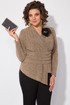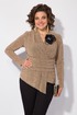 Эффектная нарядная блузка, выполнена из мягкого трикотажа с мерцающим эффектом. Такой дизайн ткани придает необычное переплетение нитей: с изнанки мягкий однотонный трикотаж! Вырез горловины мягкая стойка, переходящая в V-образный вырез с имитацией запаха. По полочке заложены декоративные складки для комфортного прилегания изделия. Низ блузки ассиметричный. Пояс декорирован задрапированным поясом из основной ткани, что зрительно стройнит и скрывает все недостатки фигуры. Рукав в точной, длинный. Спинка приталенная, без особенностей. К блузке предусмотрен съемная брошь, в виде цветка. Отлично сочетается с базовыми однотонными брюками из коллекции Лилиана.