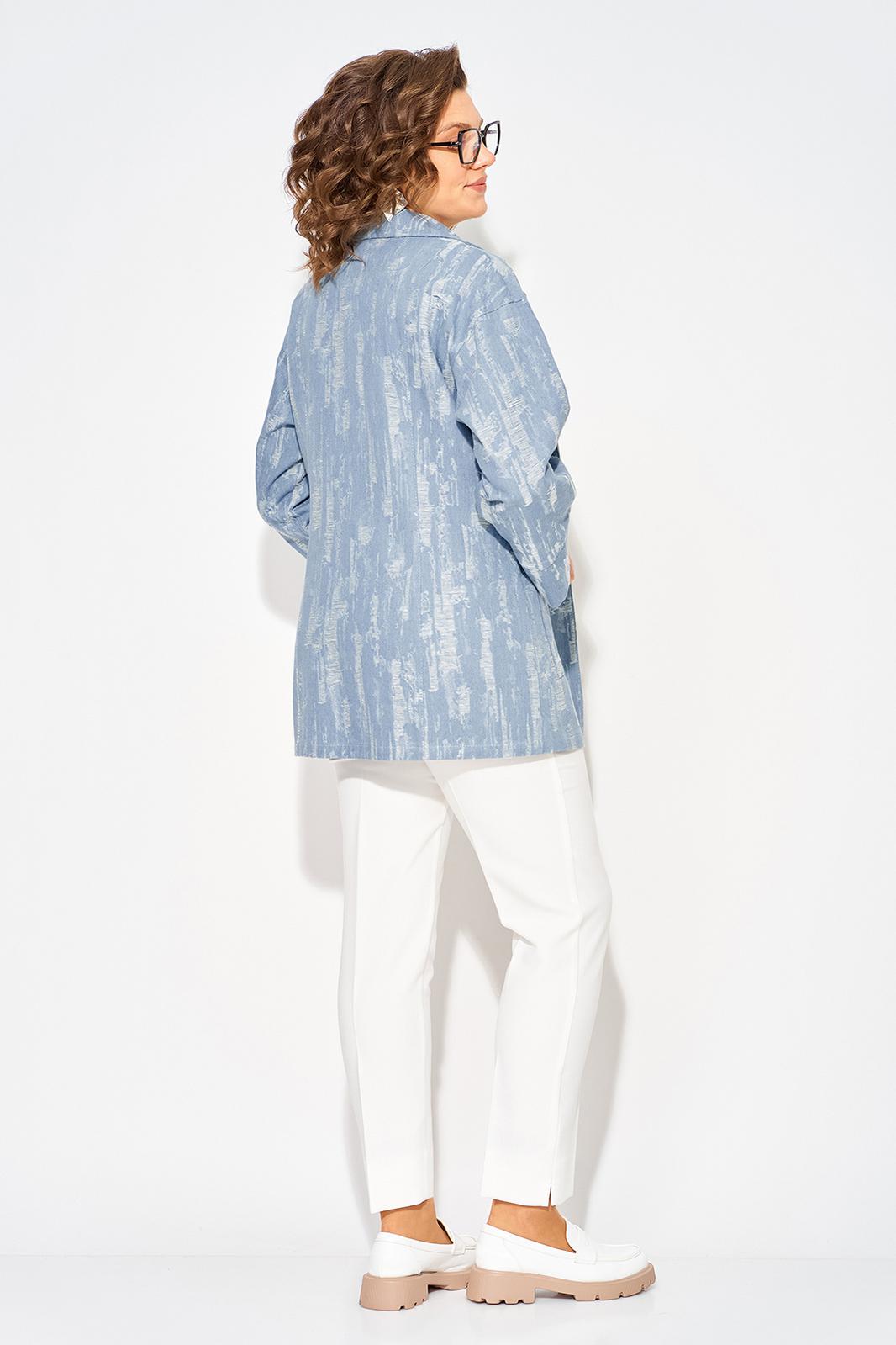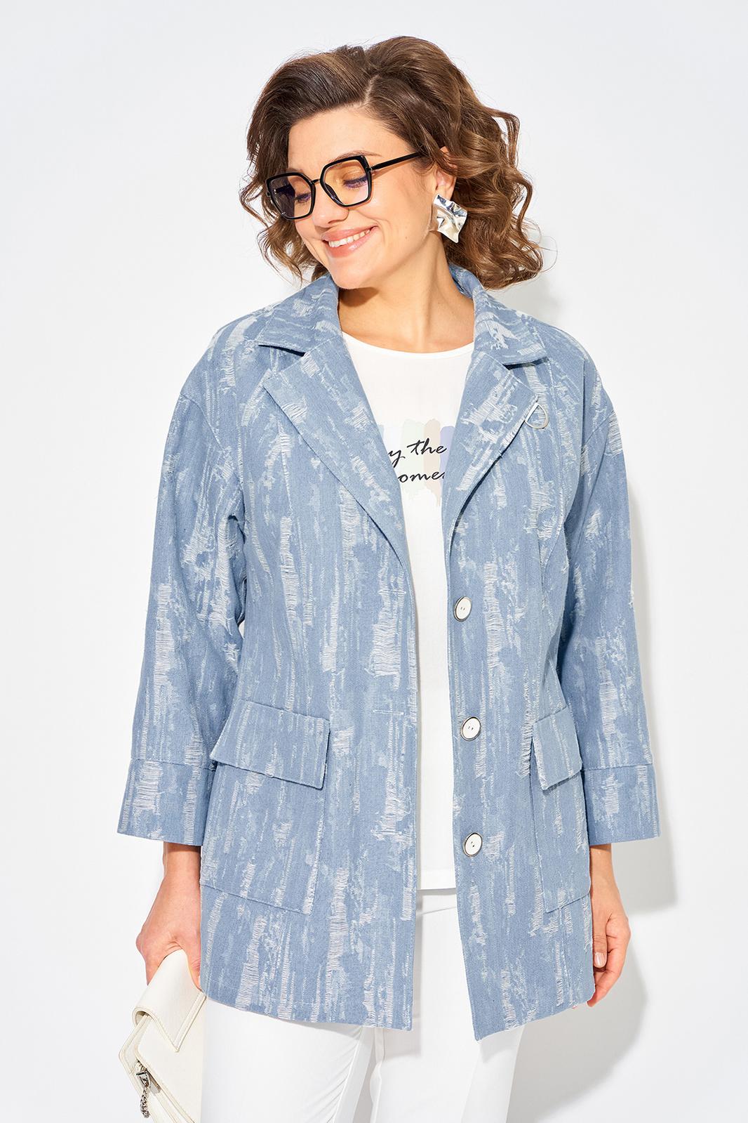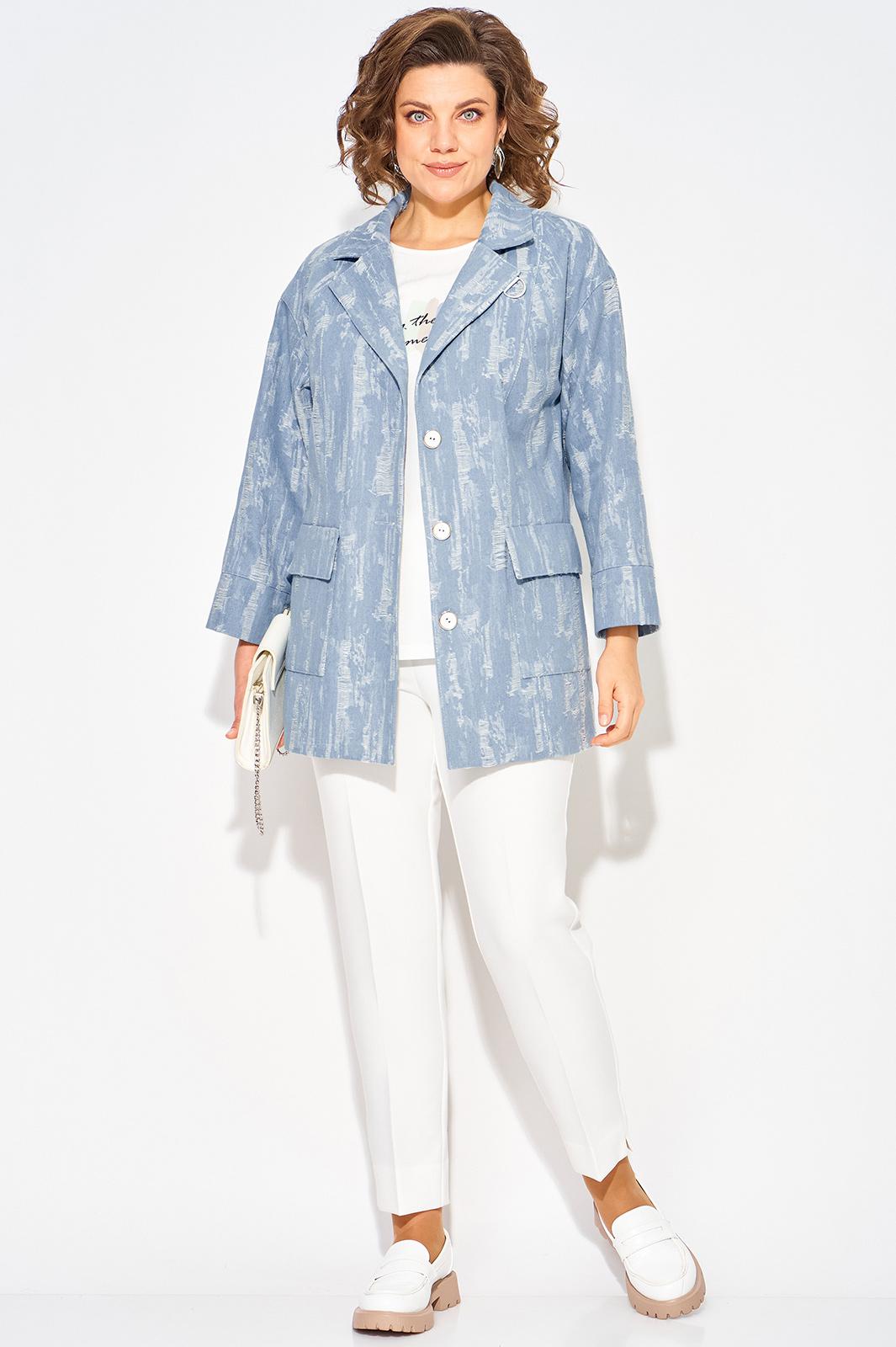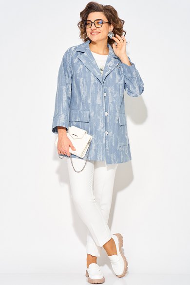 Джинсовый женский жакет идеальный выбор для создания стильного весенне-летнего образа 2026 года. Современный, светлый дизайн с эффектом гранжа придает свою изюминку изделию. Модель свободного силуэта, на спущенном плечевом поясе. Воротник отложной, английского типа с подбортом. Застежка центральная на петли и пуговицы. По полочке и спинке расположены продольные рельефы для комфортного прилегания. Спереди расположены накладные карманы с клапаном.