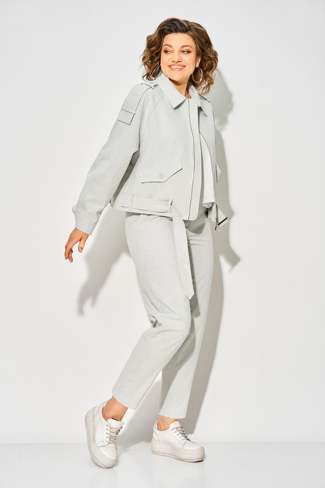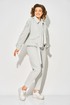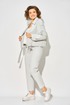 В комплекте классические женские брюки, со средней посадкой, прямого покроя от бедра. Застежка – брючная тесьма-молния с обработанным гульфиком. Карманы боковые. Пояс притачной, в боковых участках вставлена резинка на свободу. По переду заутюжены канты. Спинка с Талиевыми выточками. Подгибка брюк –– 4 см.