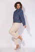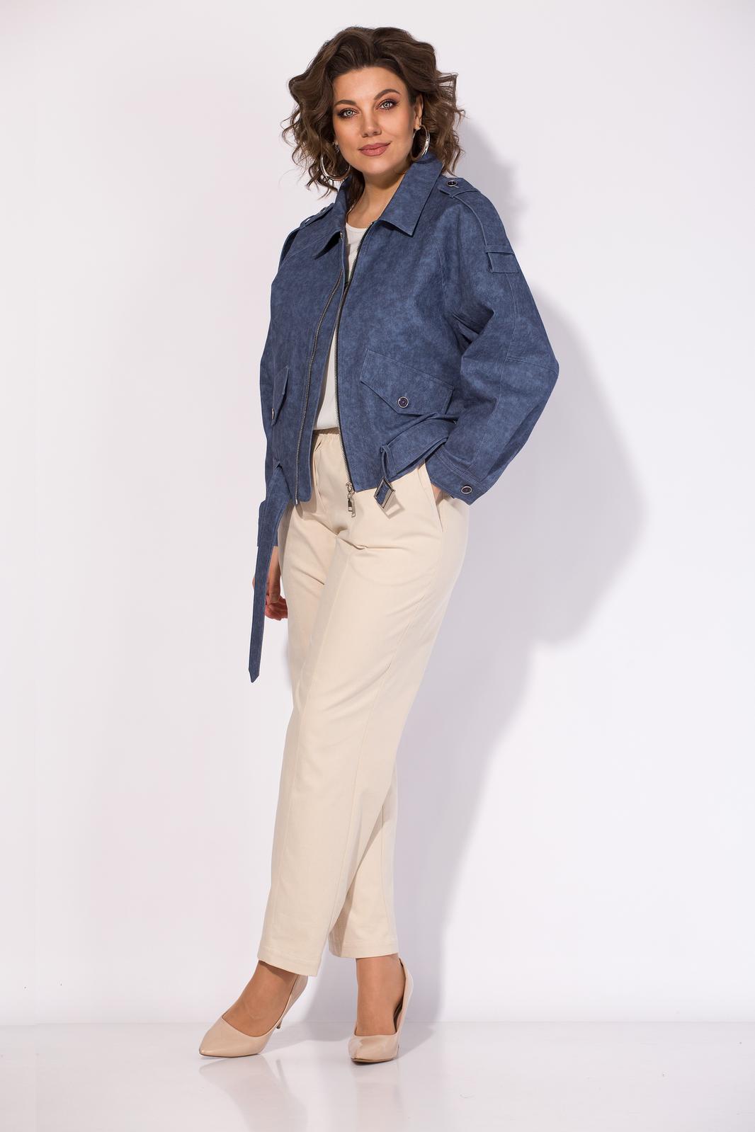 В комплекте классические женские брюки, со средней посадкой, прямого покроя от бедра. Застежка – брючная тесьма-молния с обработанным гульфиком. Карманы боковые. Пояс притачной, в боковых участках вставлена резинка на свободу. По переду заутюжены канты. Спинка с Талиевыми выточками. Подгибка брюк –– 4 см.