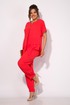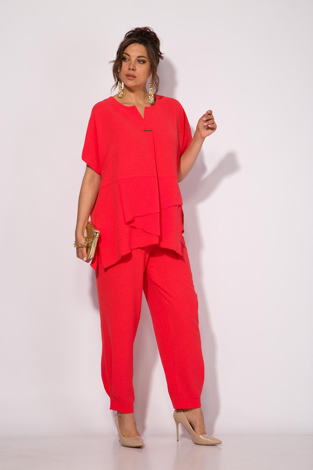 Стильный летний костюм состоящий из ассиметричной туники и свободных брюк. Модель туники свободного силуэта, со спущенным цельнокроеным рукавом. Вырез горловины округлый, переходящий в V-образный мыс с заложенной складкой. По линии талии заложена декоративная ассиметричная деталь, что создает необычный эффектный образ и скрывает все недостатки, подчеркивая достоинства. Брюки со средней посадкой, на притачном поясе с резинкой. По бокам расположены карманы. По низу брюк заложены декоративные складки, что создает эффект восточного образа!