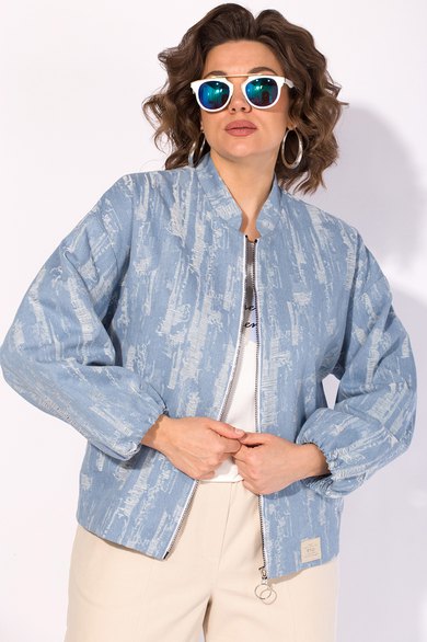 Женский джинсовый жакет, по типу «бомбера» из 100% хлопка в голубом цвете - стильный и экологичный выбор для вашего гардероба! Это универсальный демисезонный жакет на металлической молнии идеально подойдет как для повседневных образов, так и для особых случаев. Объемный крой и широкие рукава, присборенные по низу подчеркивают ниспадающий силуэт куртки в стиле кейп. Модель с функциональными прорезными карманами, воротник оформлен небольшой стойкой, защищает от непогоды. По спинке модель имеет резинку, для более комфортного прилегания. Модель на подкладке.