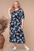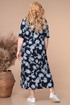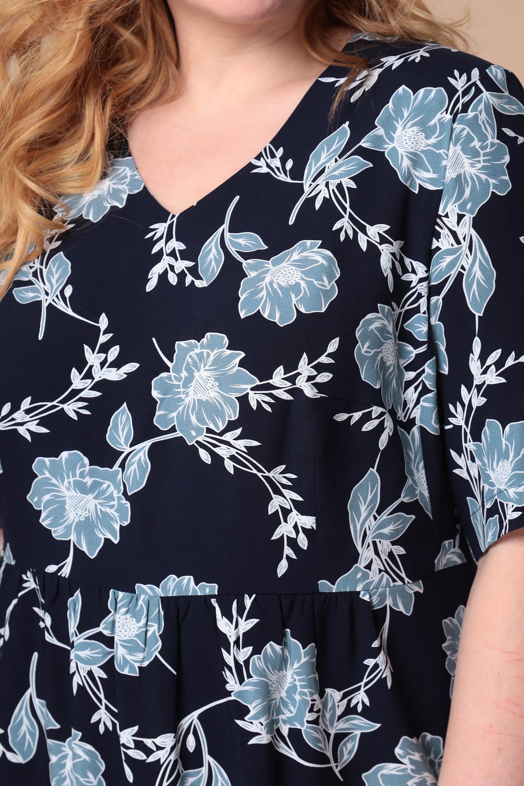 Повседневное текстильное удлинённое платье, выполненное из натуральной ткани штапель с принтом. Вырез горловины V-образный. Рукав втачной, короткий. Горизонтальный подрез чуть выше талии, нижняя часть платья чуть присобрана. По переду бочки с нагрудными и талиевыми вытачками. По спинке подрез, талиевые и плечевые вытачки. Длина спинки -- 128,5см. ПОГ:60р-62,5см, 62р-64,5см, 64р-66,5см. ПОТ:60р-59,5см, 62р-61,5см, 64р-63,5см. ПОБ:60р-73,5см, 62р-75,5см, 64р-77,5см. Ширина рукава вверху (половина): 60р-22,6см, 62р-23,3см, 64р-24см.