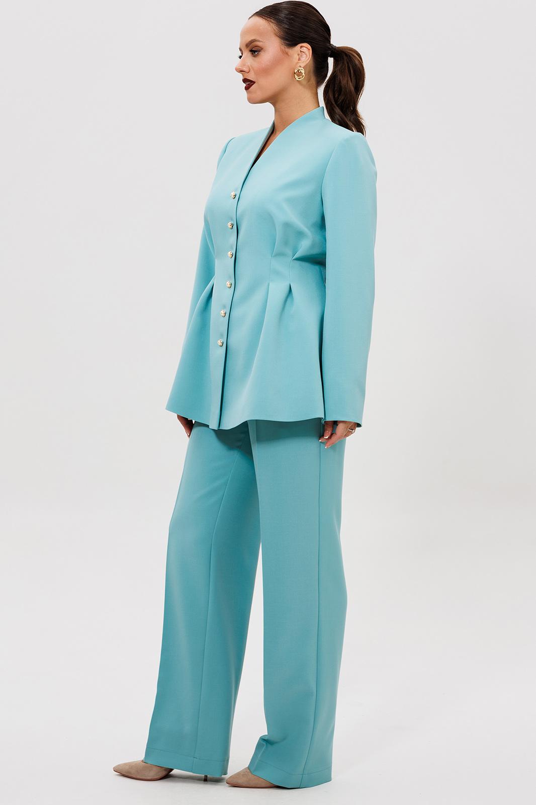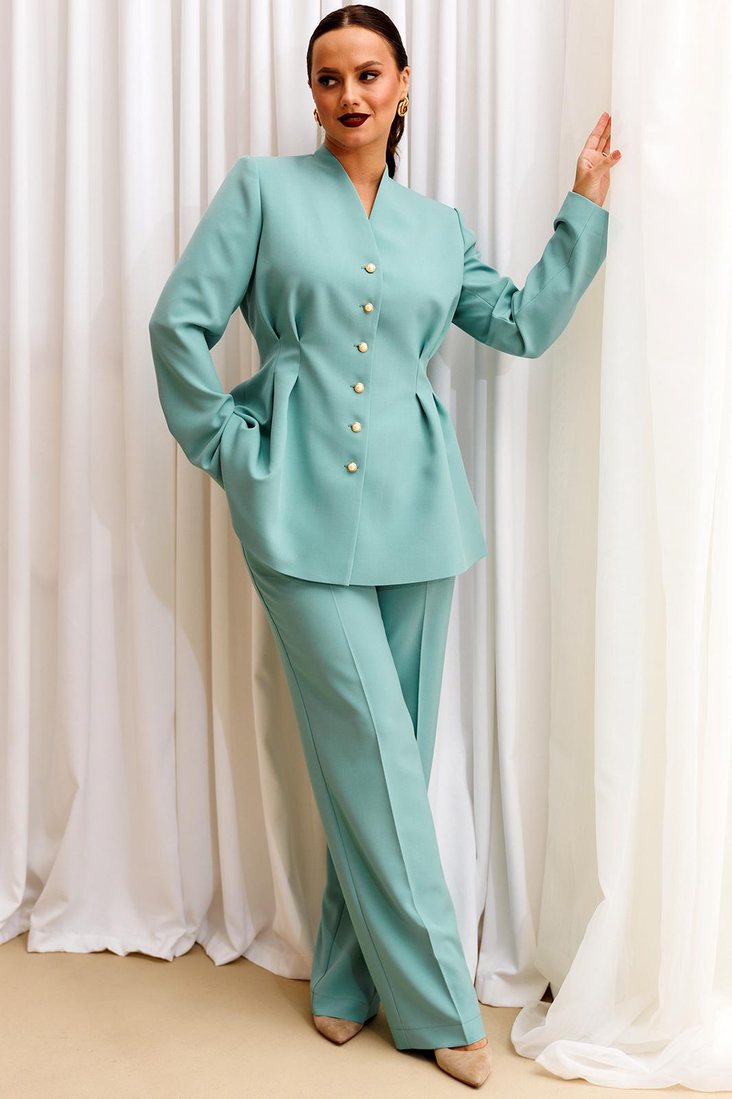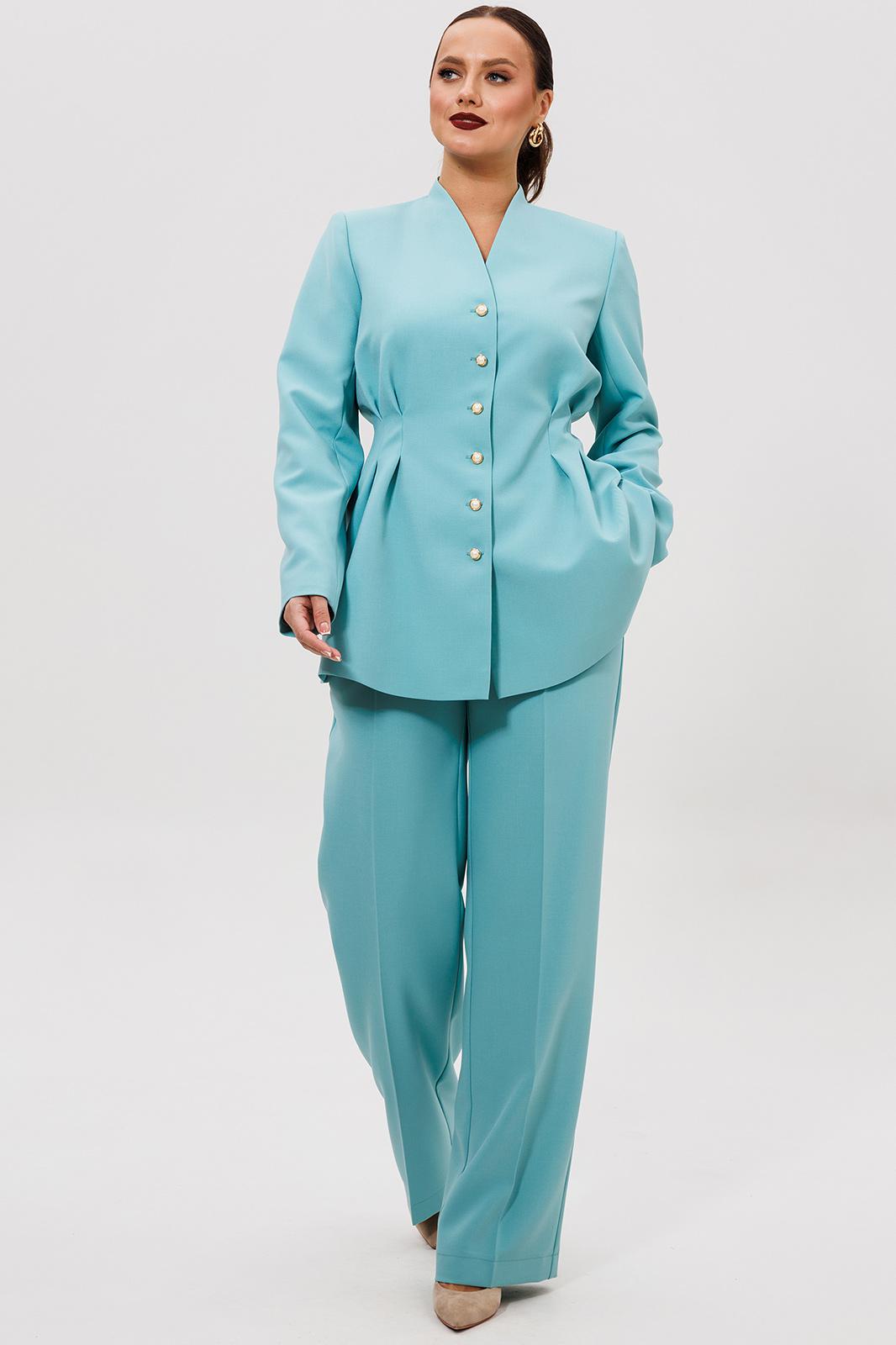 Жакет выполнен из костюмной ткани. Жакет Х-образного силуэта, длиной чуть