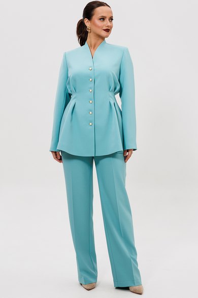 Воротник - цельнокроеная стойка. Рукав втачной двух шовный. Жакет на