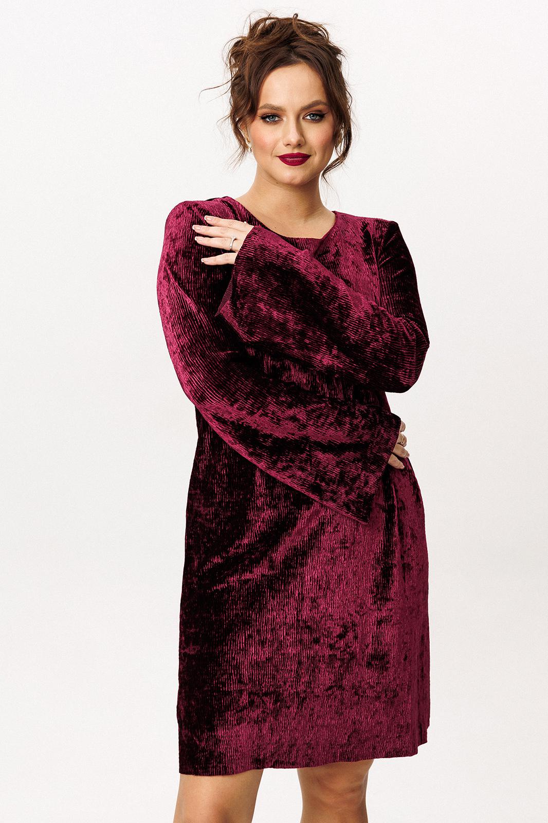 Платье выполнено из крэш бархата. Платье свободного силуэта. Горловина