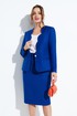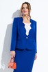Жакет с фигурным вырезом горловины и центральной застёжкой на петлю и пуговицу. Перед с рельефами и карманами в нижней части. Спинка со средним швом и рельефами. Рукава втачные. Жакет на подкладке.