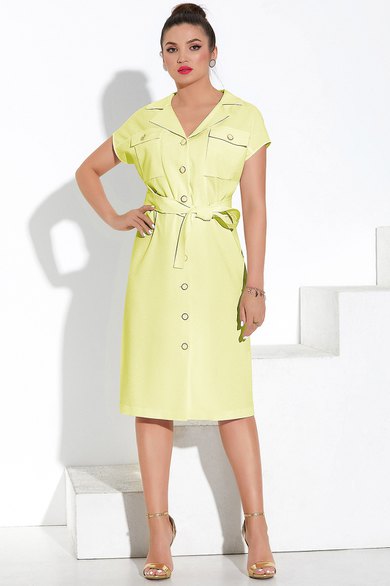 Комплектация: Платье, пояс. Минималистичное платье полуприлегающего силуэта на основе цельнокроеного покроя с воротником пиджачного типа и съемным поясом. Перед оформлен горизонтальной кокеткой настрочными карманами с клапанами. Спинка с горизонтальной кокеткой и средним швом. Съемный пояс дополняет весь образ.