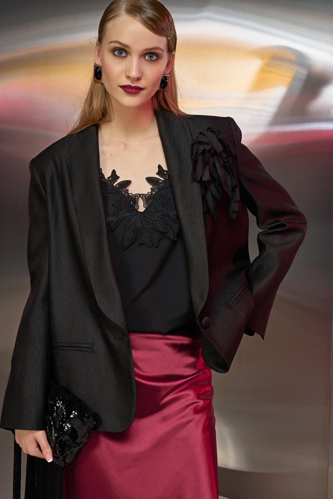 Топ прямого, выполнен из блузочной ткани. По переду надстрочное кружево. Блуза на регулируемых бретелях.