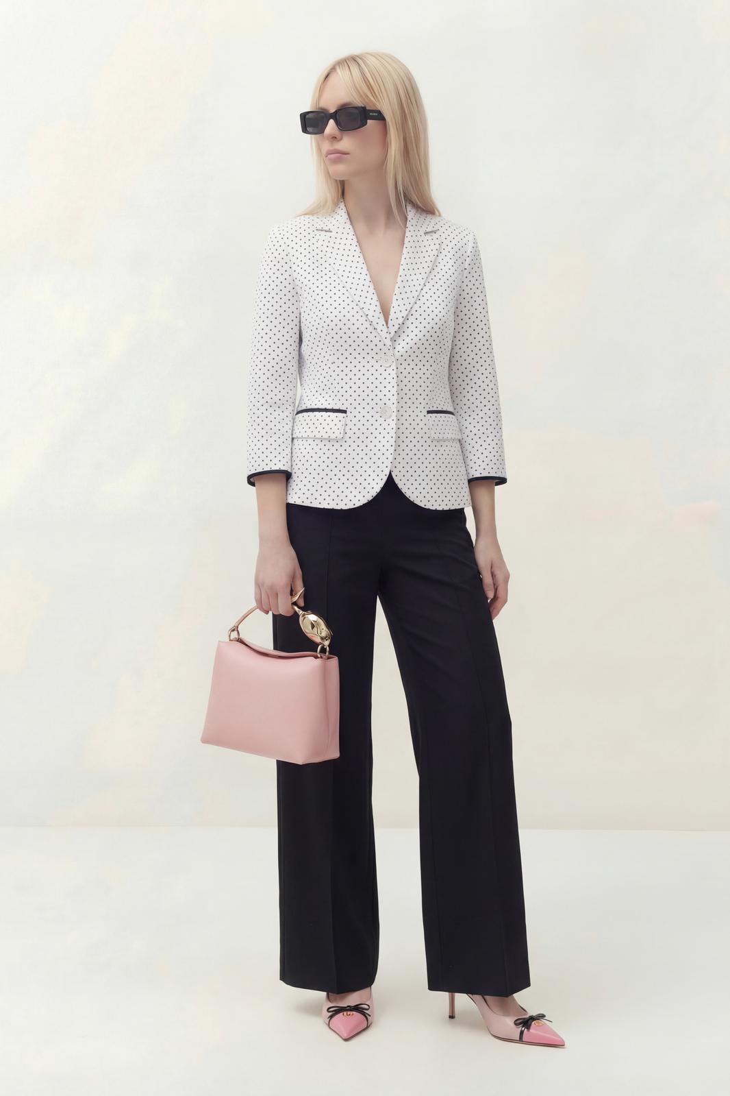 - Тип ткани: жакет (лен 85%, П/Э 10%, лайкра 5%), брюки (лен 100%)