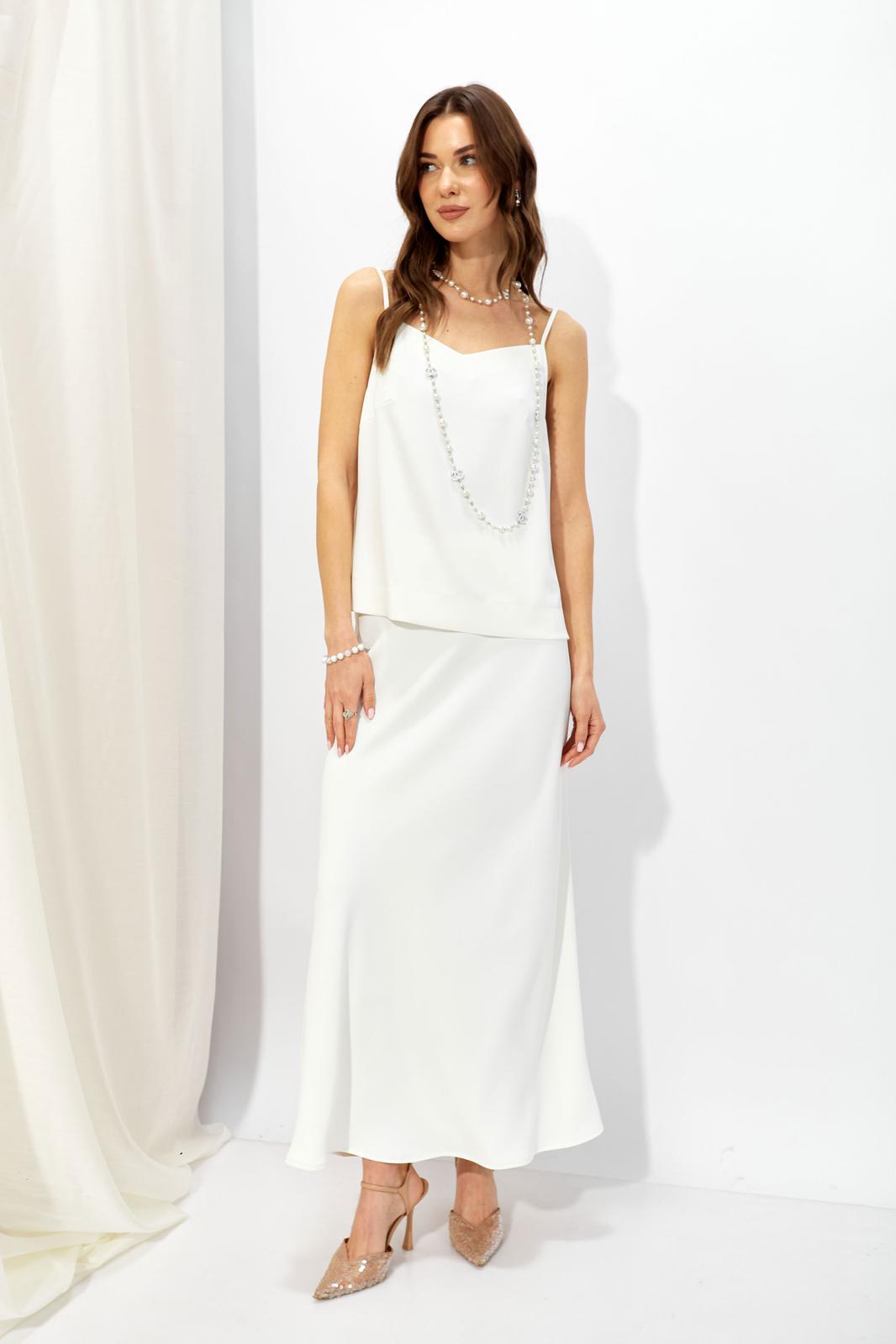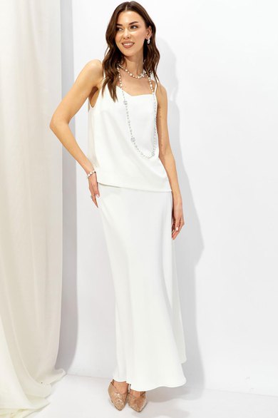 Базовый топ в бельевом стиле из струящейся ткани прямого силуэта с V-образным вырезом на тонких регулируемых бретелях. Его можно носить отдельно или в многослойных образах.